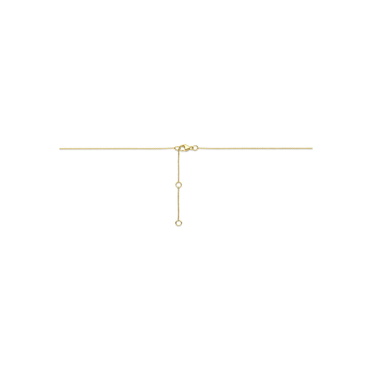 14k Geelgouden collier uitgevoerd met lab grown diamant. Het collier heeft een schakelbreedte van 0.5mm en lengtes van 41-43-45cm. Het totale diamantgewicht is 0.65ct. Lab grown diamanten zijn diamanten die ontstaan in een laboratorium. Onder extreem hoge druk en temperatuur wordt het natuurlijk ontstaansproces nagebootst met als eindresultaat een diamant met dezelfde chemische eigenschappen maar met een andere oorsprong.