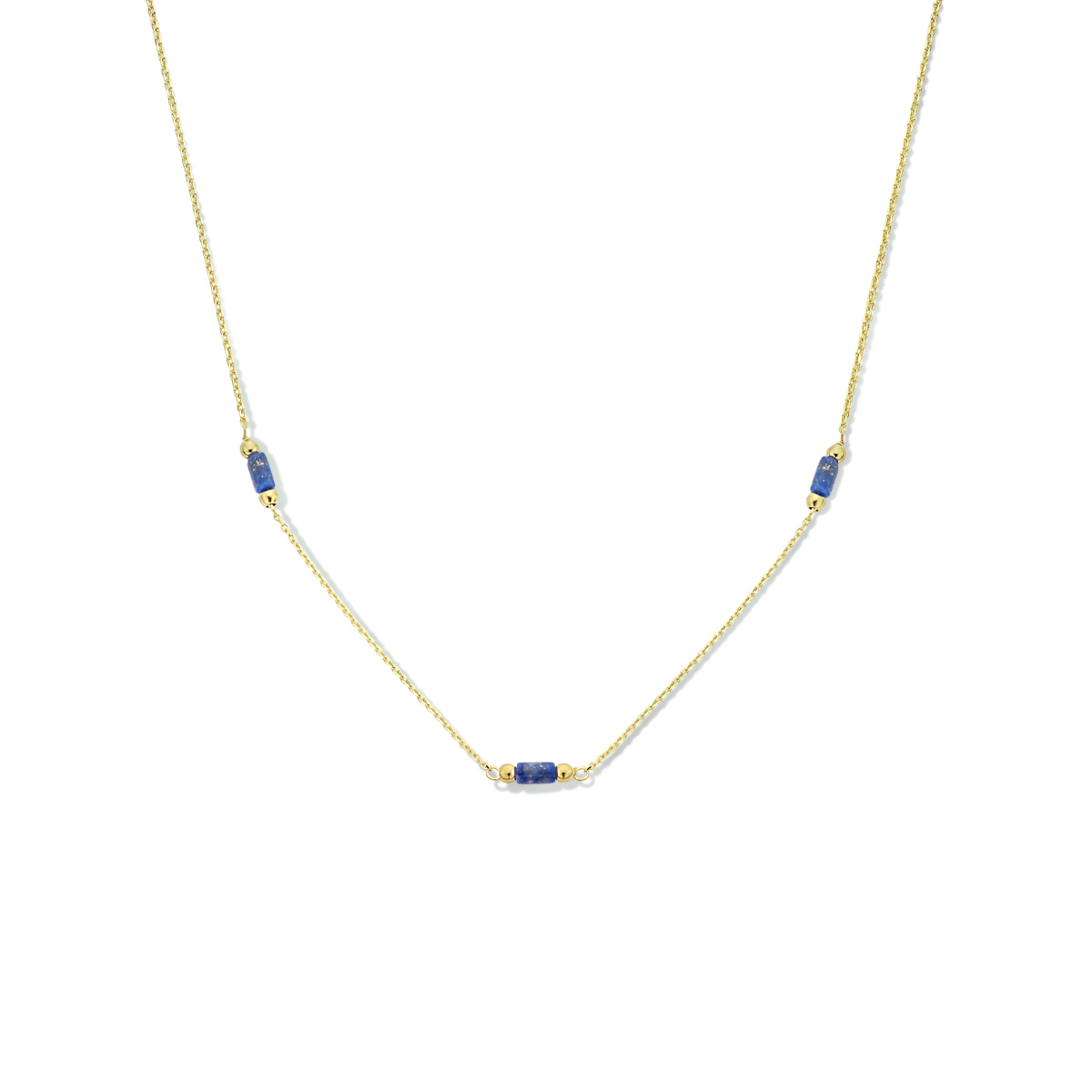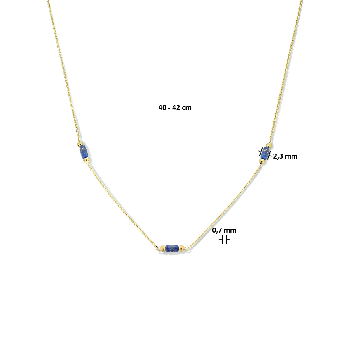 14k Geelgouden collier uitgevoerd met lapis. Het collier heeft een breedte van 2.3mm en draaglengtes van 40 en 42cm. De schakelbreedte is 0.7mm.