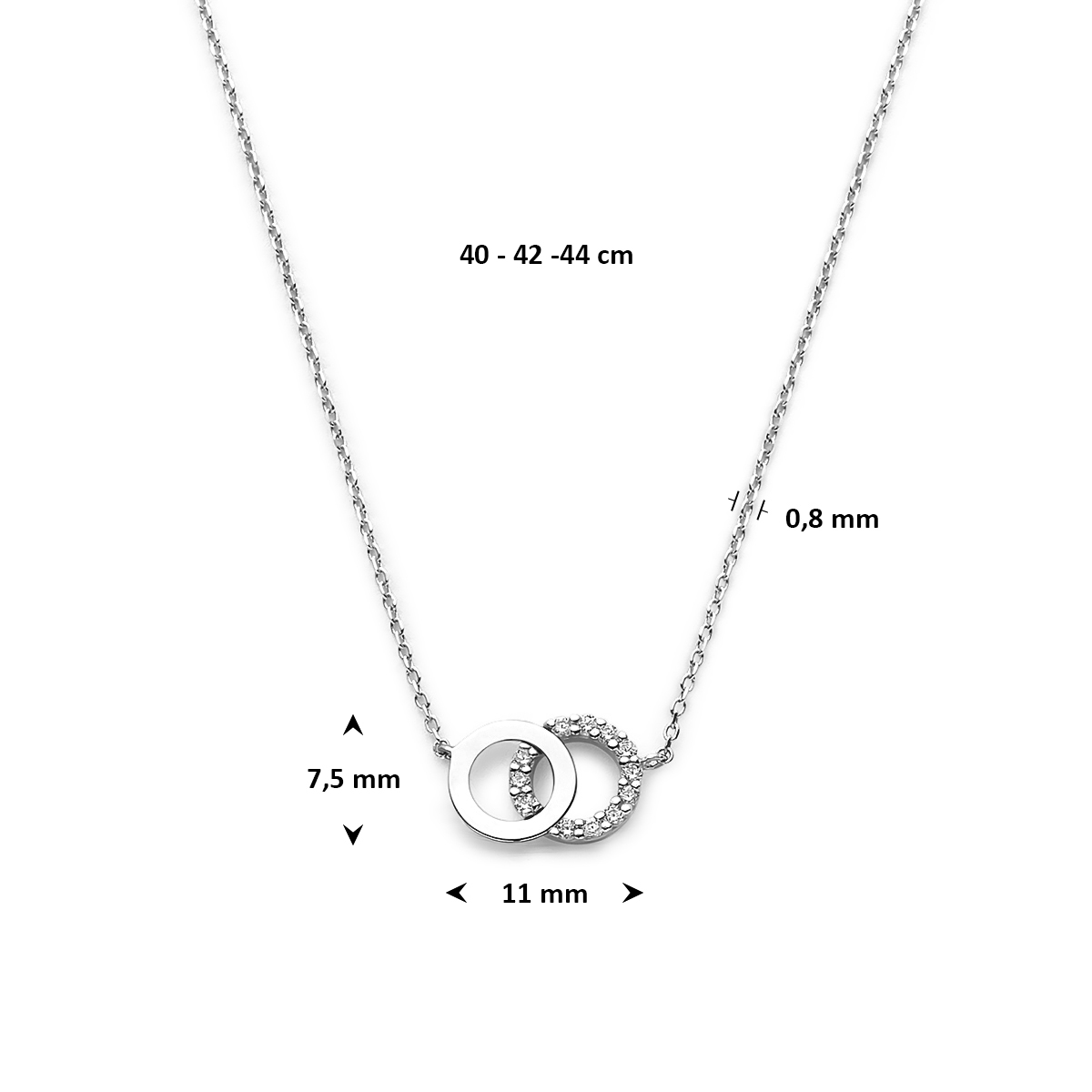 collier rondjes zirkonia 40 – 42 – 44 cm 14K witgoud
