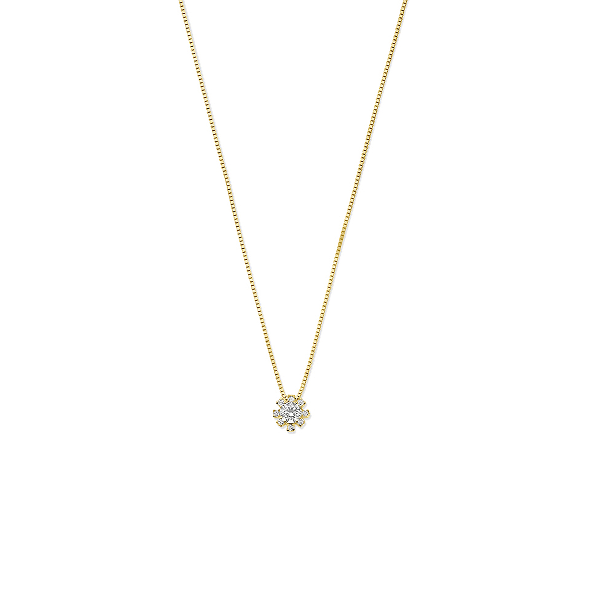 14k Geelgouden collier uitgevoerd met zirkonia. Het collier heeft draaglengtes van 40-42-44cm.