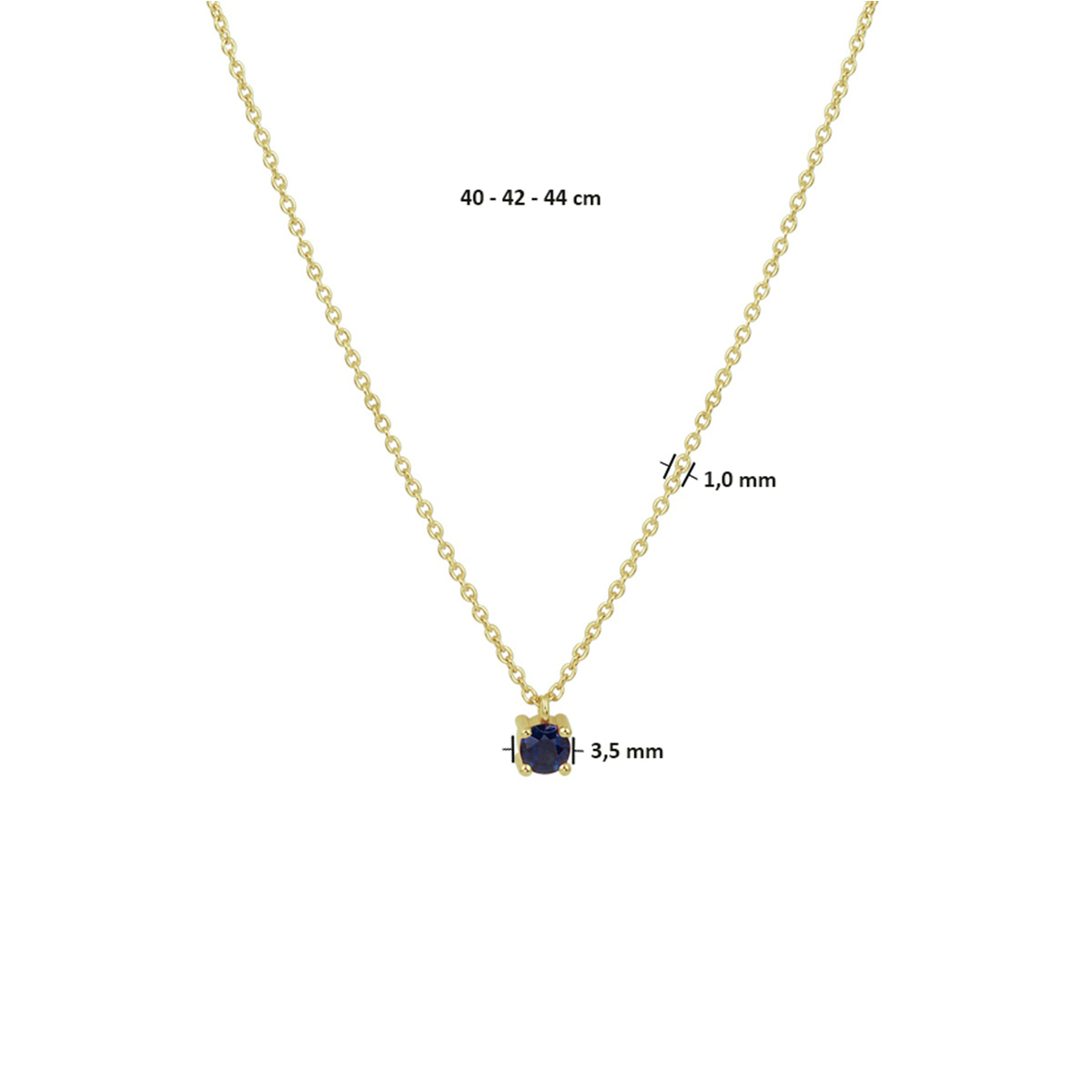 14k Geelgouden anker collier uitgevoerd met een schitterende saffier. Het collier heeft draaglengtes van 40, 42 en 44cm. De schakelbreedte is 1.0mm.