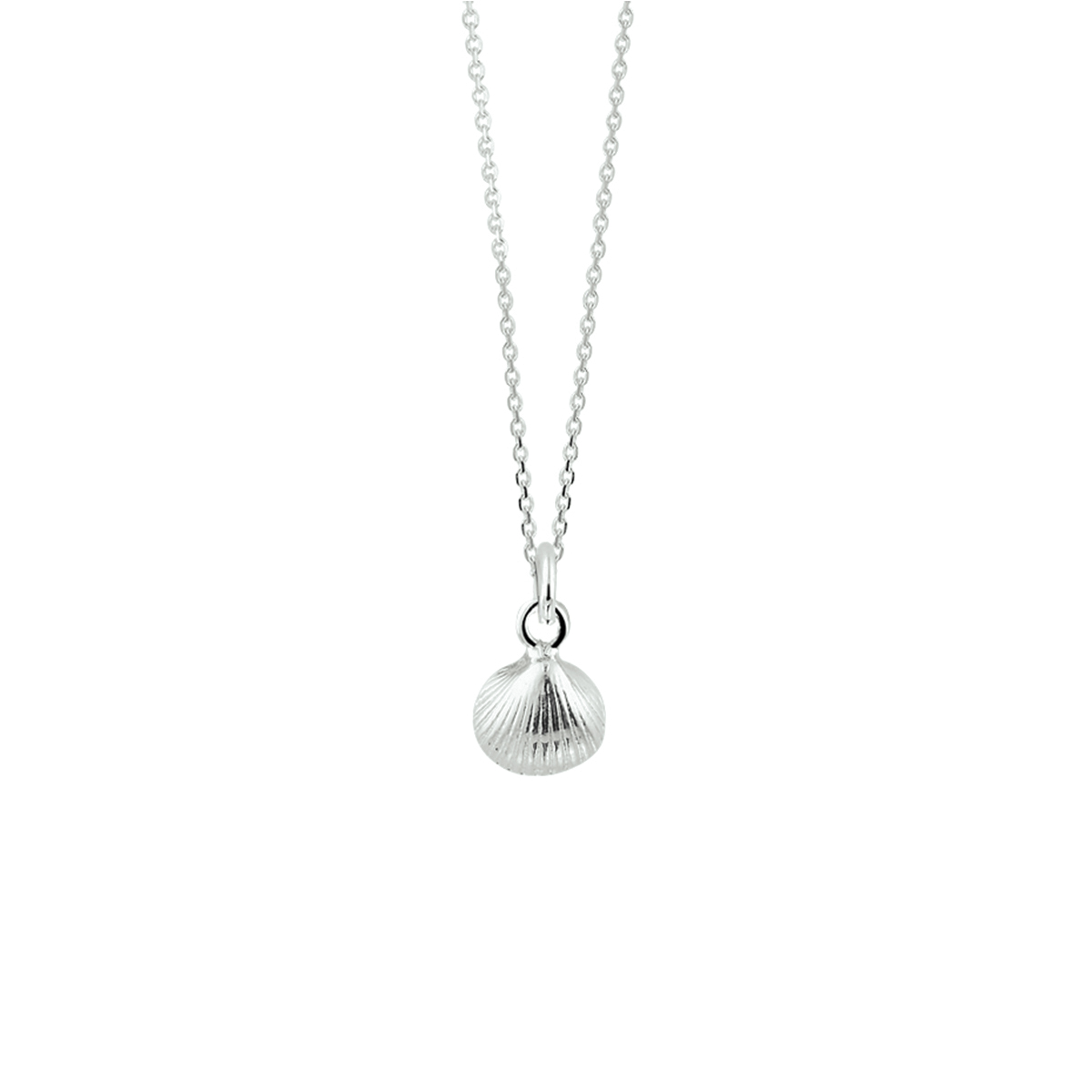 925 Zilveren anker collier uitgevoerd met een hanger in de vorm van een schelp. De hanger heeft een totale hoogte van 1.6cm en een breedte van 8mm. Het collier heeft een draaglengte van 41cm en een extensie van 4cm.