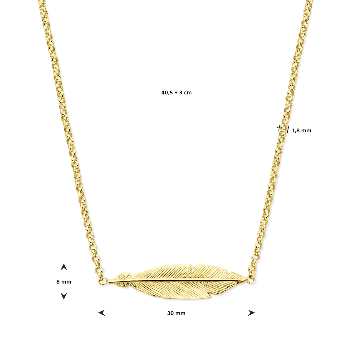 Trendy verguld op zilveren 1.8mm anker collier met een lengte van 40.5cm met een extensie van 3cm. Het collier is uitgevoerd met een veer van 30x8mm en stevige karabijn sluiting. Geen garantie op plating.