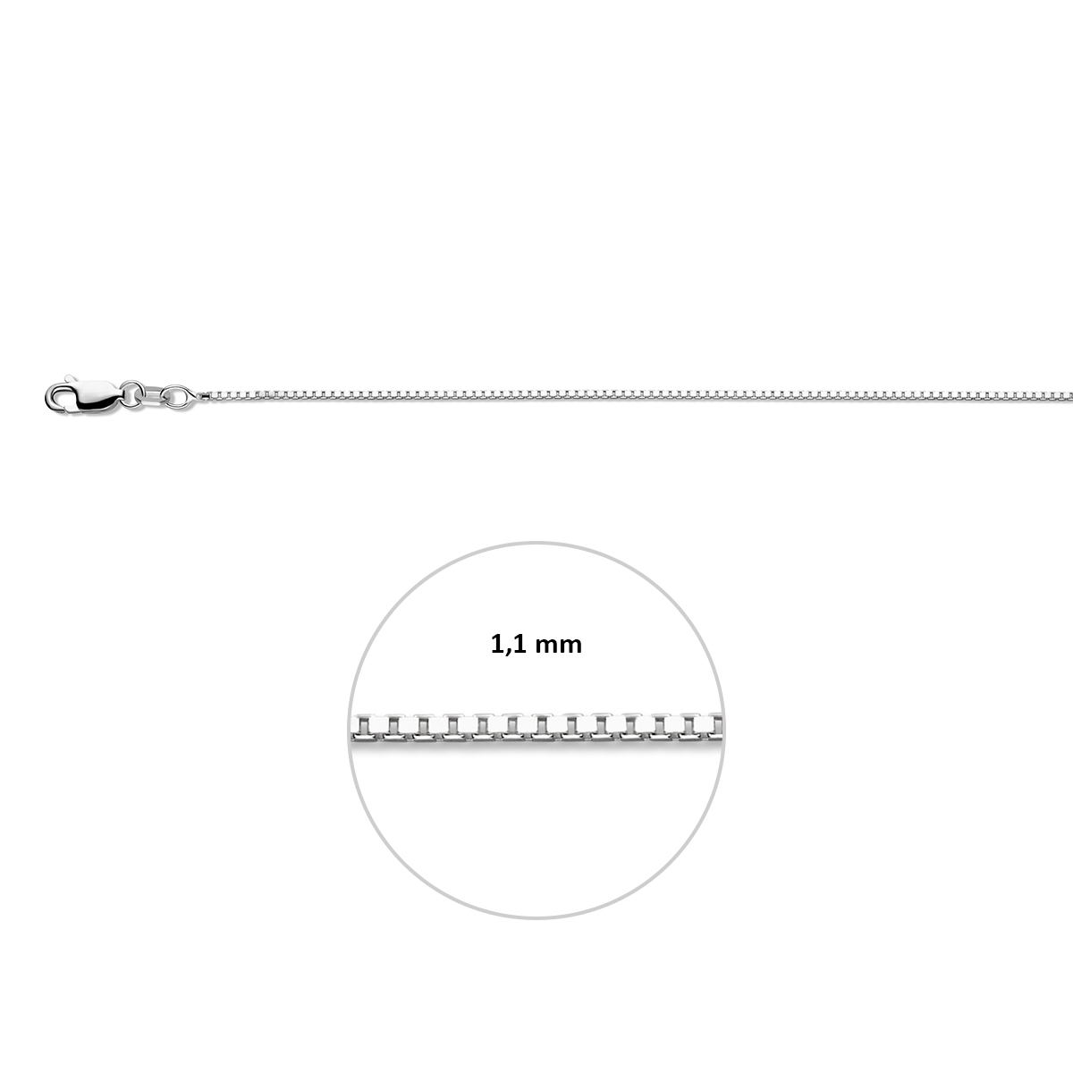 Zilveren venetiaans collier met een draaglengte van 41cm en een extensie van 4cm. Uitgevoerd met een karabijn sluiting. De schakelbreedte is 1.1mm.