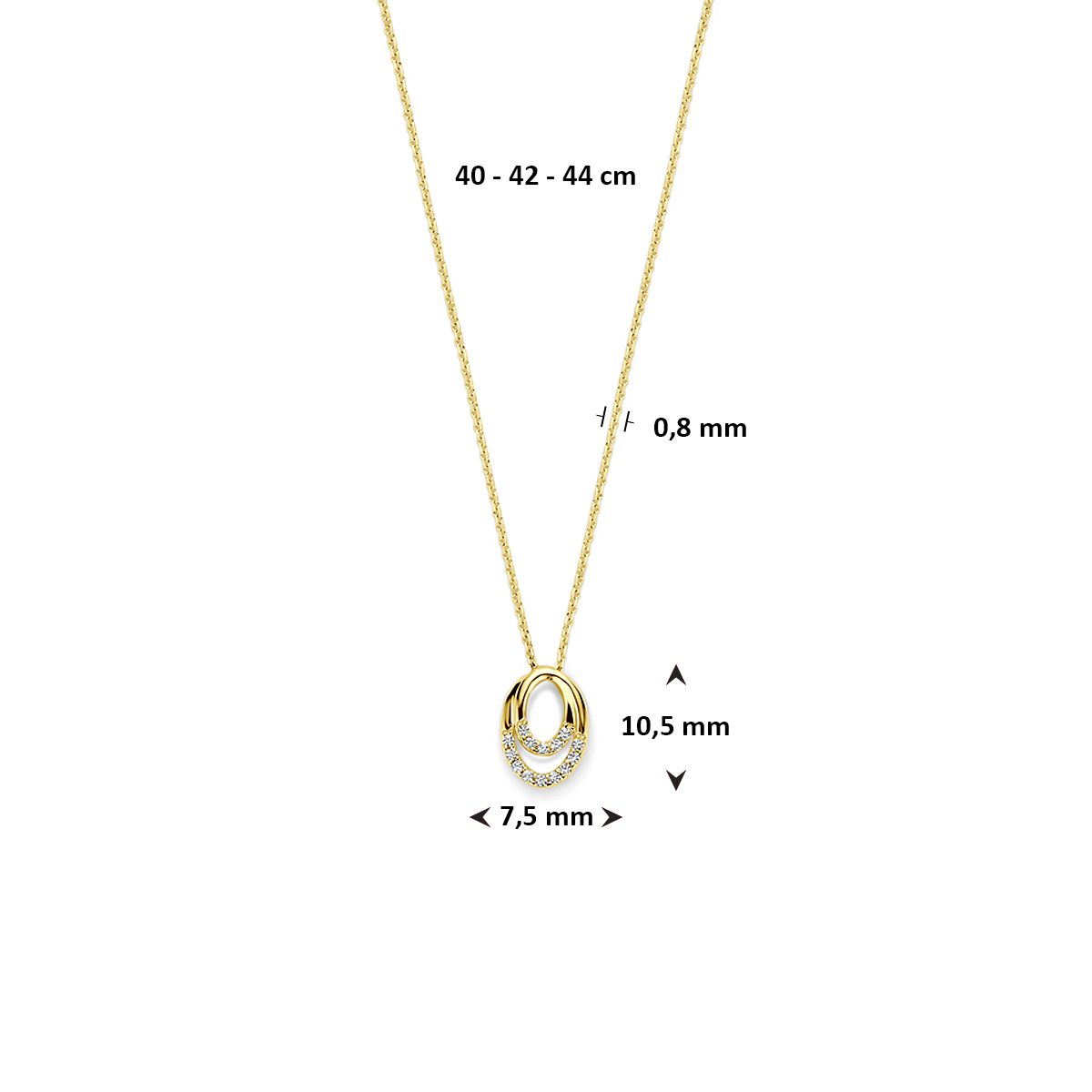 14k Geelgouden collier uitgevoerd met zirkonia. Het collier heeft een draaglengte van 40-42-44cm.