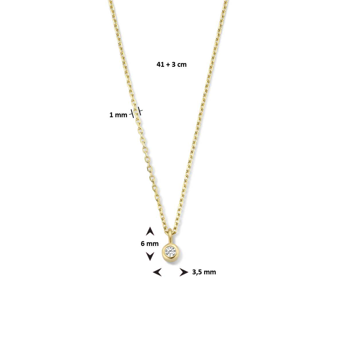 collier zirkonia 41 + 4 cm 14K geelgoud