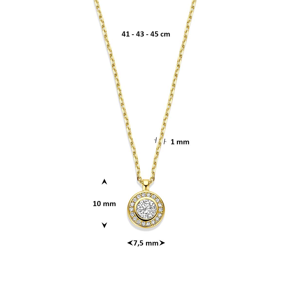 14k Geelgouden collier uitgevoerd met zirkonia. Het collier heeft draaglengtes van 41-43-45cm.