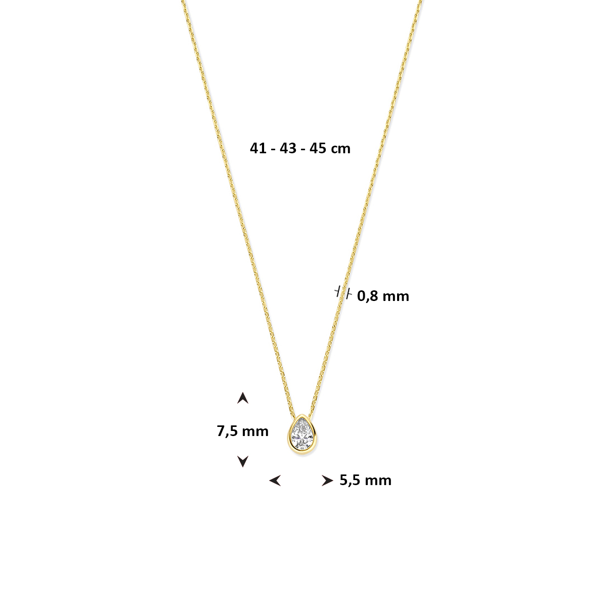 14k Geelgouden collier met zirkonia. Het collier heeft draaglengtes van 41-43-45cm en een schakelbreedte van 0.8mm.
