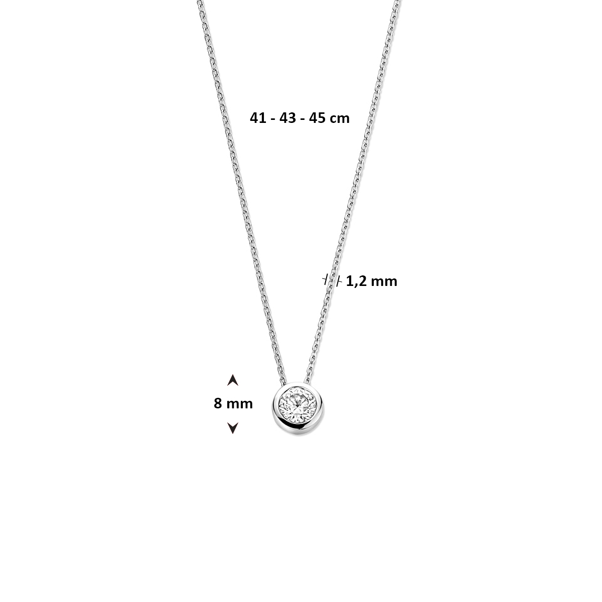 Gerhodineerd 925 zilveren collier uitgevoerd met een hanger met zirkonia. Het collier heeft draaglengtes van 41-43-45cm.