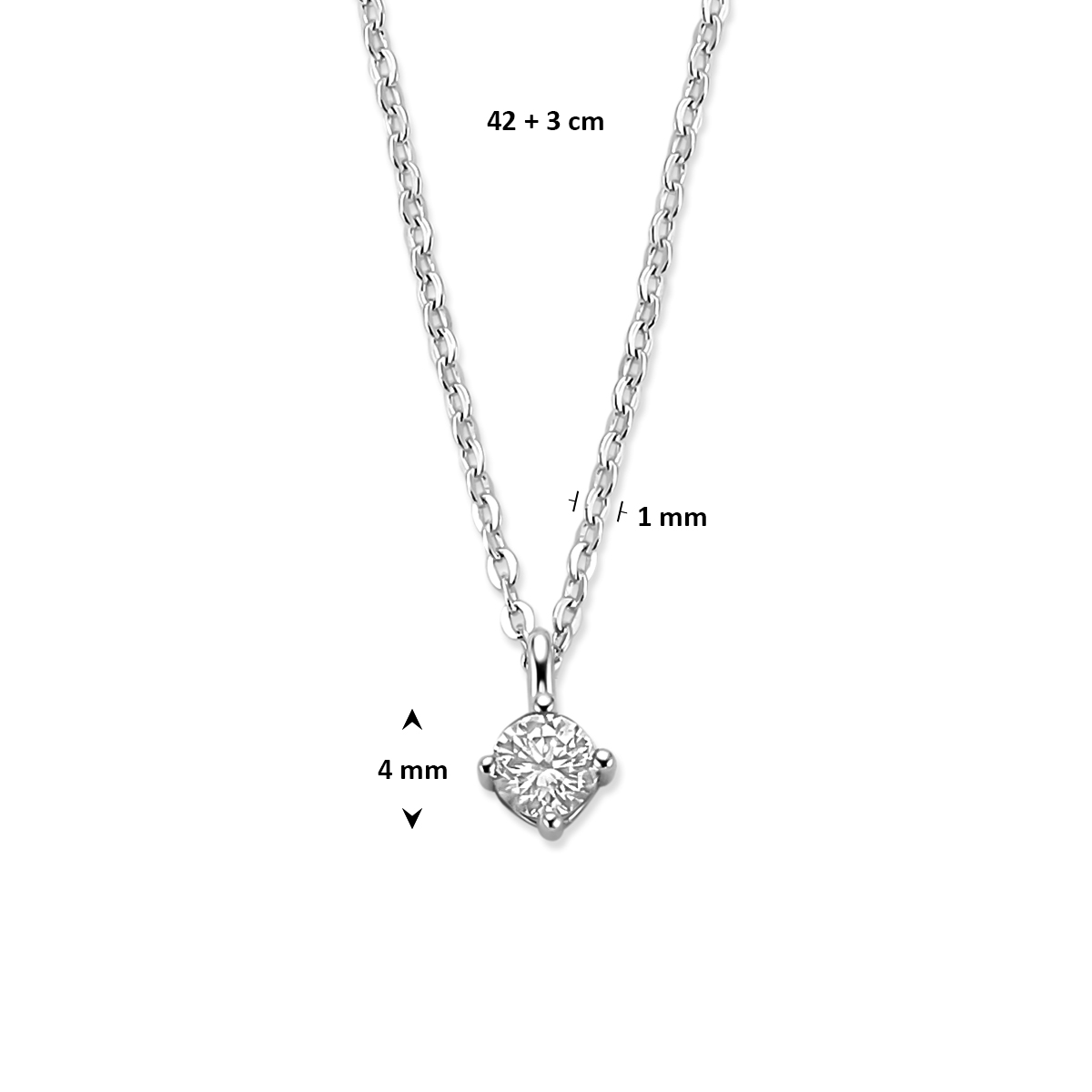 collier zirkonia 42 + 3 cm zilver gerhodineerd