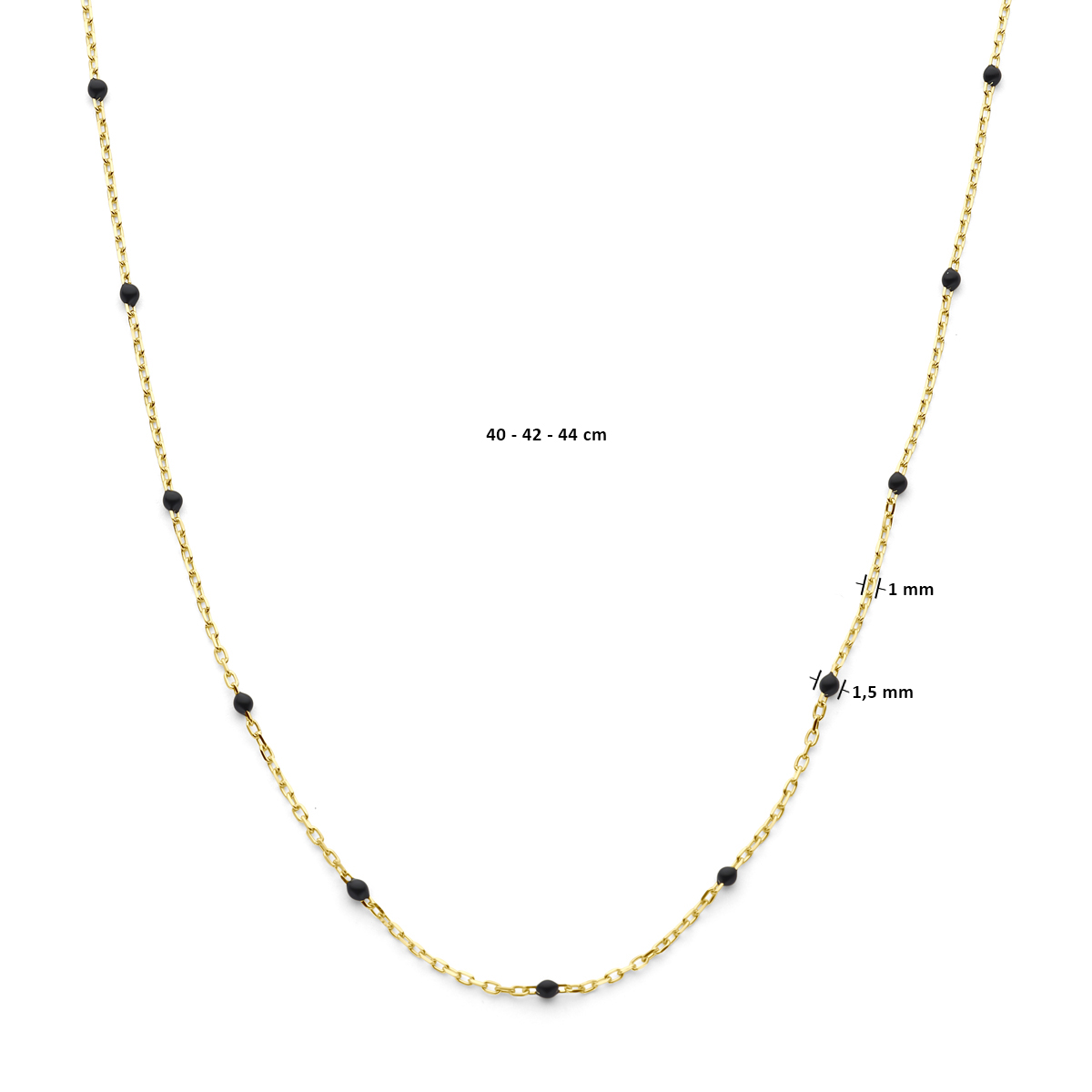 collier zwart emaille 1 mm 14K geelgoud