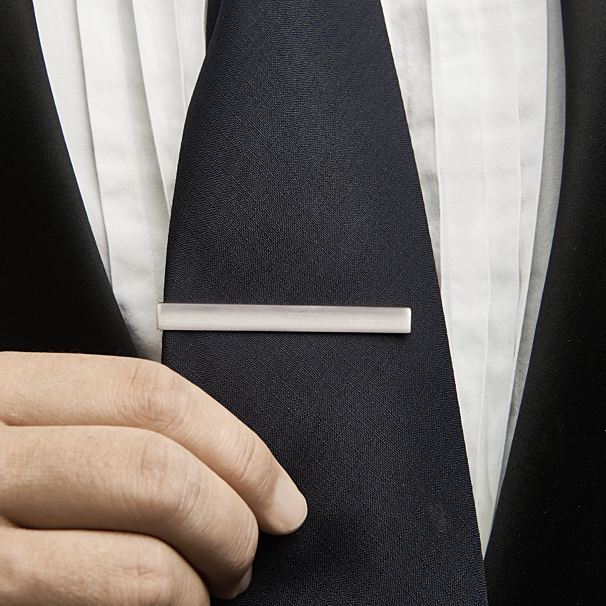 Gerhodineerd zilveren dasschuif met een poli/matte afwerking.