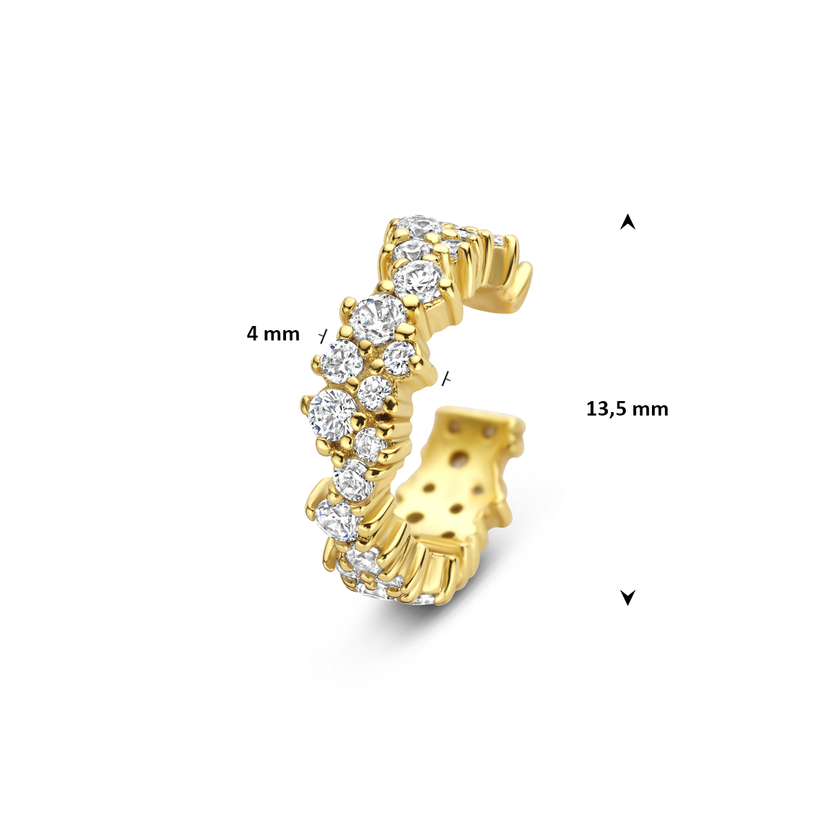 Verguld geel 925 zilveren ear cuff met zirkonia. De afmeting is 13.5x4mm. Geen garantie op plating.