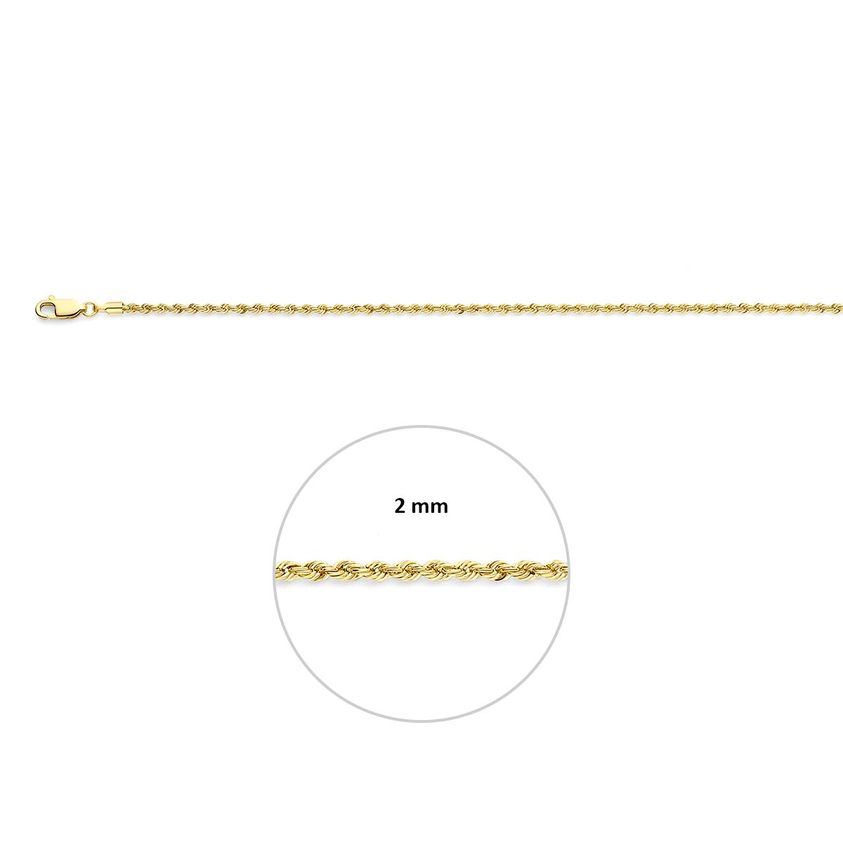 enkelbandje koord 2,0 mm 26 – 28 cm 14K geelgoud