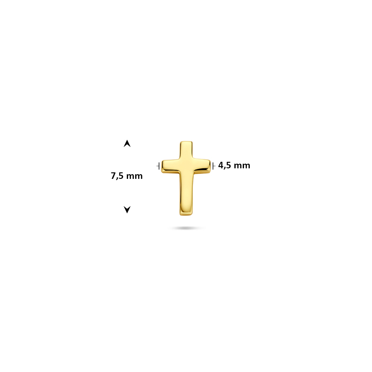 flat back piercing kruis 7,5 mm 1 micron zilver verguld (geel)