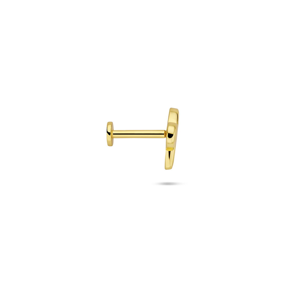 Verguld 925 zilveren flat back piercing met schroefdraad uitgevoerd in de vorm van een strikje. Deze piercing heeft een afmeting van 6,5×8,0mm, een buis lengte van 6,5mm en een buisdikte van 1mm. Worden per stuk verkocht. Geen garantie op plating.