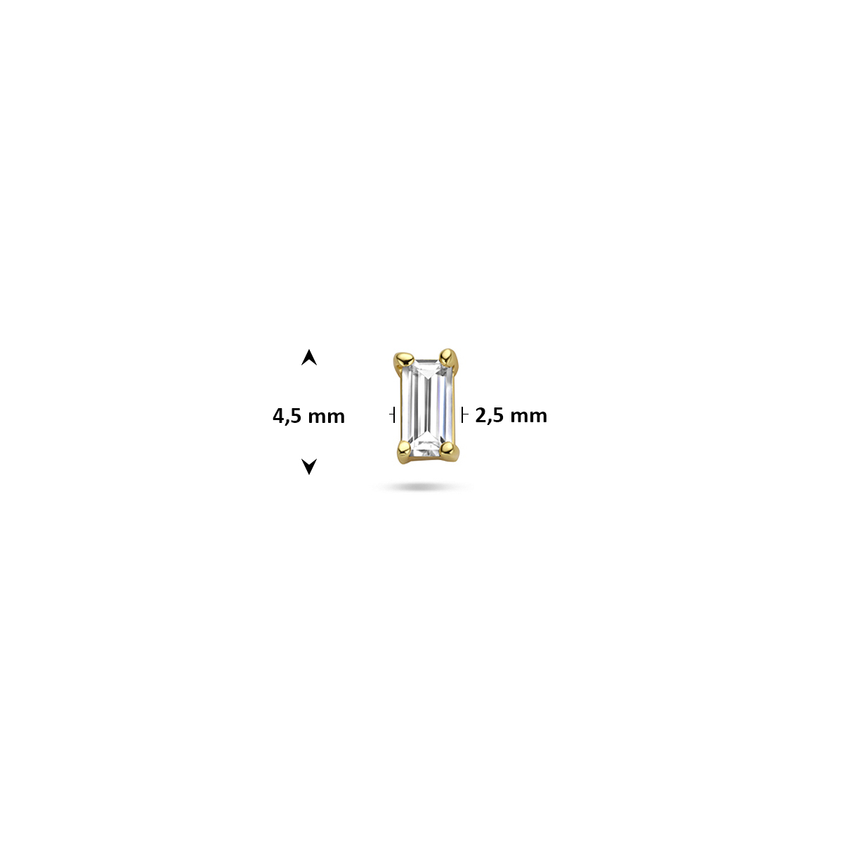 Verguld 925 zilveren flat back piercing met zirkonia en schroefdraad. Deze piercing heeft een afmeting van 4,5×2,5mm, een buis lengte van 6,5mm en een buisdikte van 1mm. Worden per stuk verkocht. Geen garantie op plating.