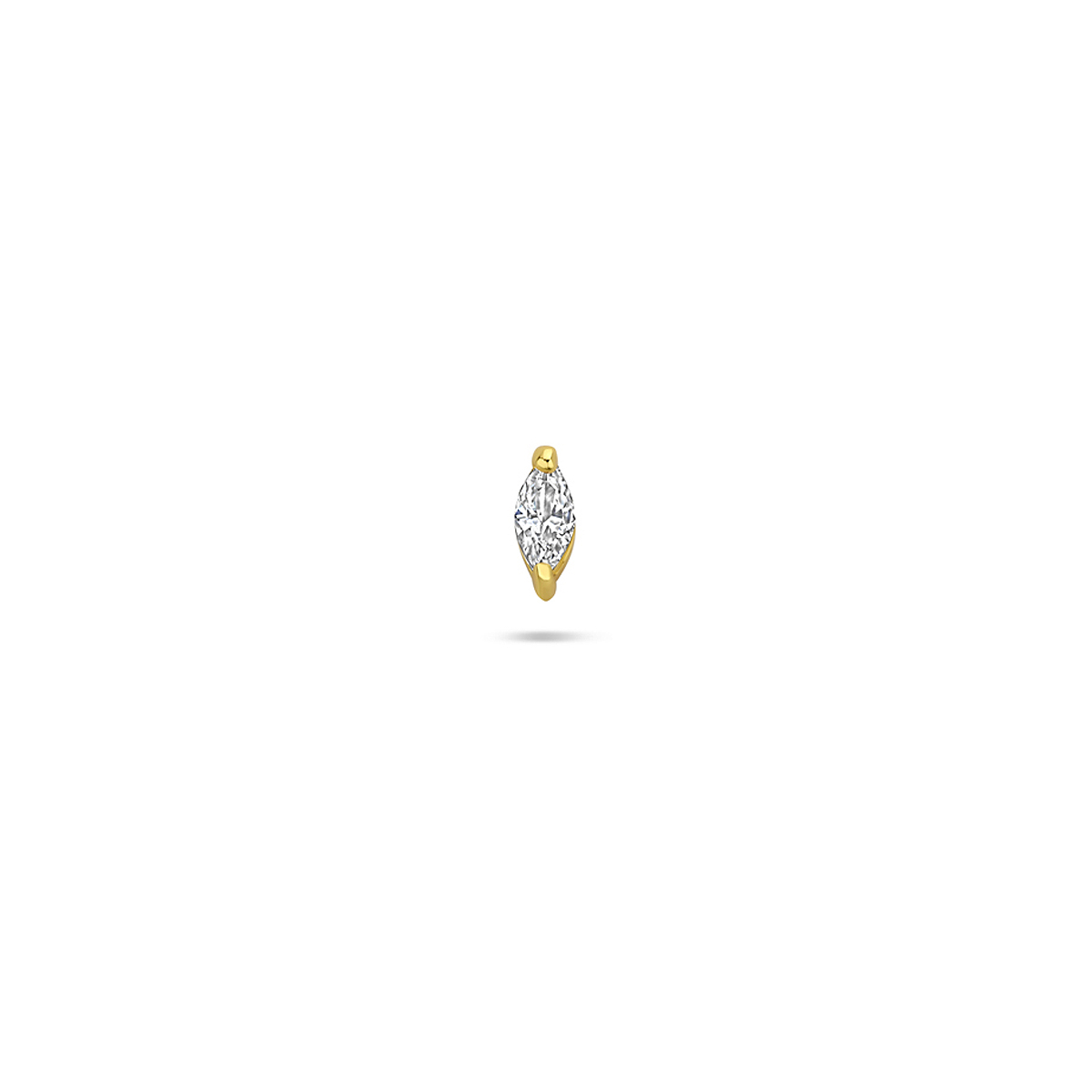 Verguld 925 zilveren flat back piercing met schroefdraad uitgevoerd met zirkonia. Deze piercing heeft een afmeting van 5x2mm, een buis lengte van 6,5mm en een buisdikte van 1mm. Worden per stuk verkocht. Geen garantie op plating.