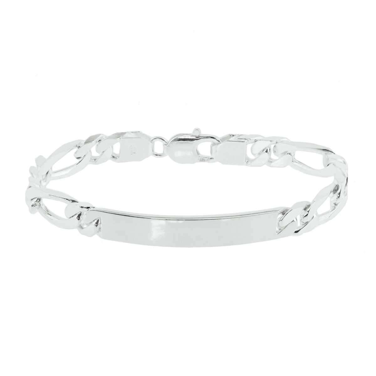 graveerarmband figaro plaat 7,6 mm 20 cm zilver wit