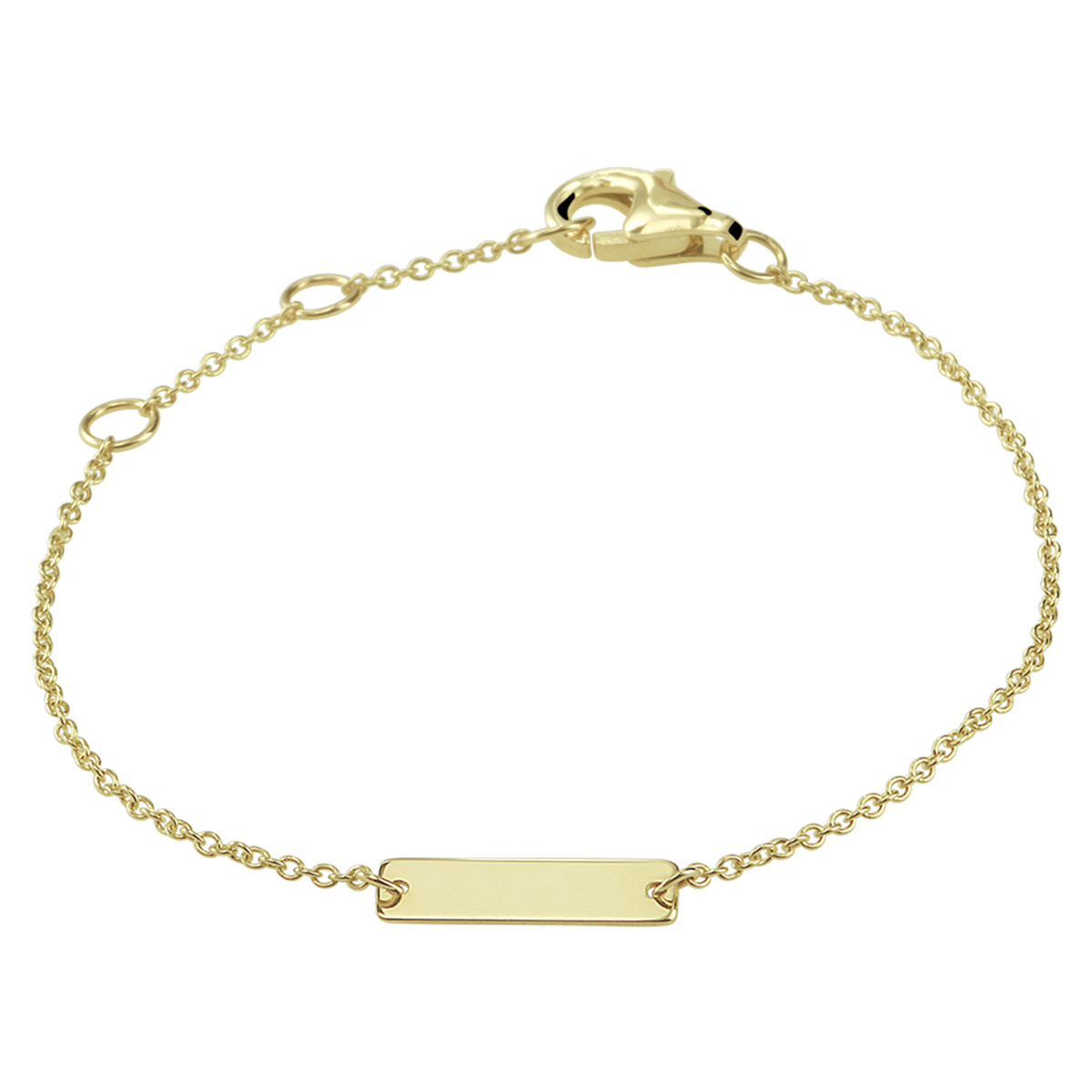 14k Geelgouden anker armband uitgevoerd met een graveerplaat van 3x12mm met een dikte van 0.4mm en een stevige karabijn sluiting. De armband heeft een schakelbreedte van 1.0mm.