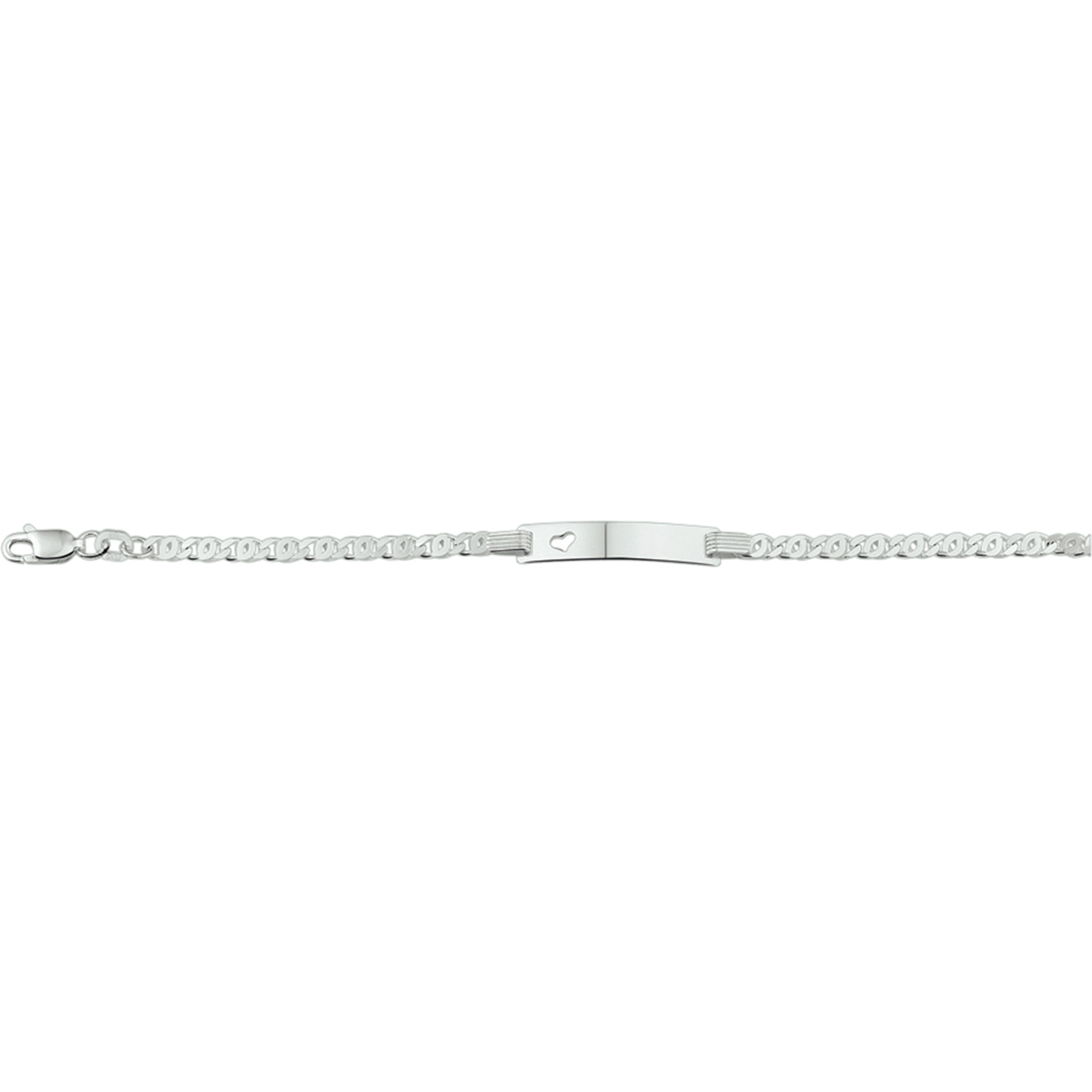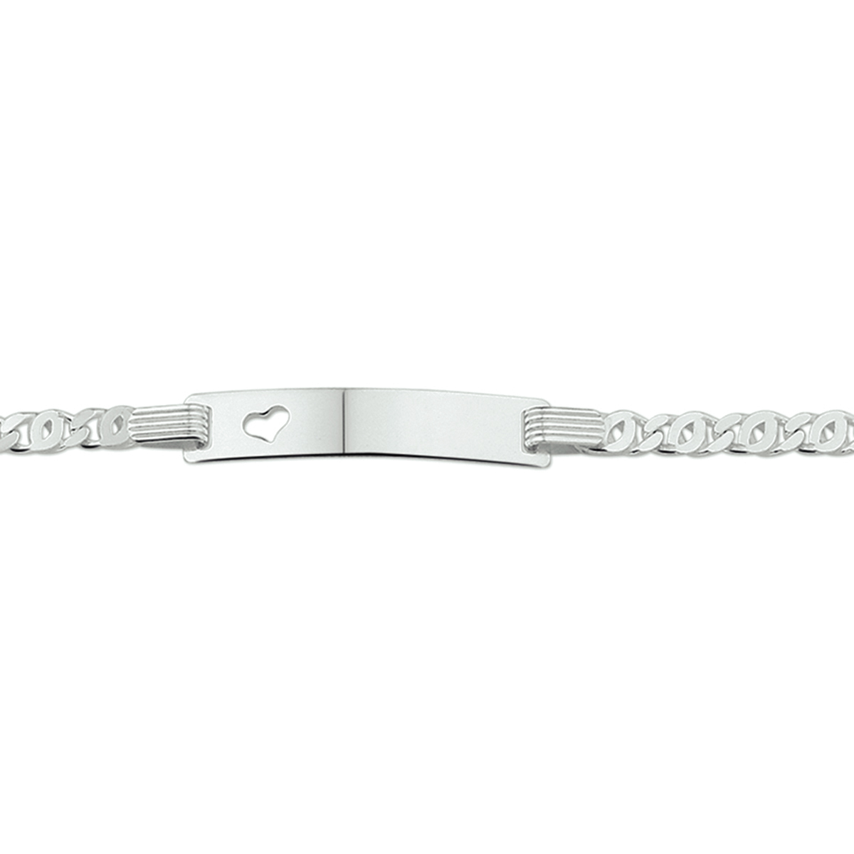 925 zilveren graveerarmband uitgevoerd met een graveerplaat. De armband heeft een draaglengte van 16-18cm. De graveerplaat heeft een afmeting van 25x5mm en een dikte van 0.8mm.