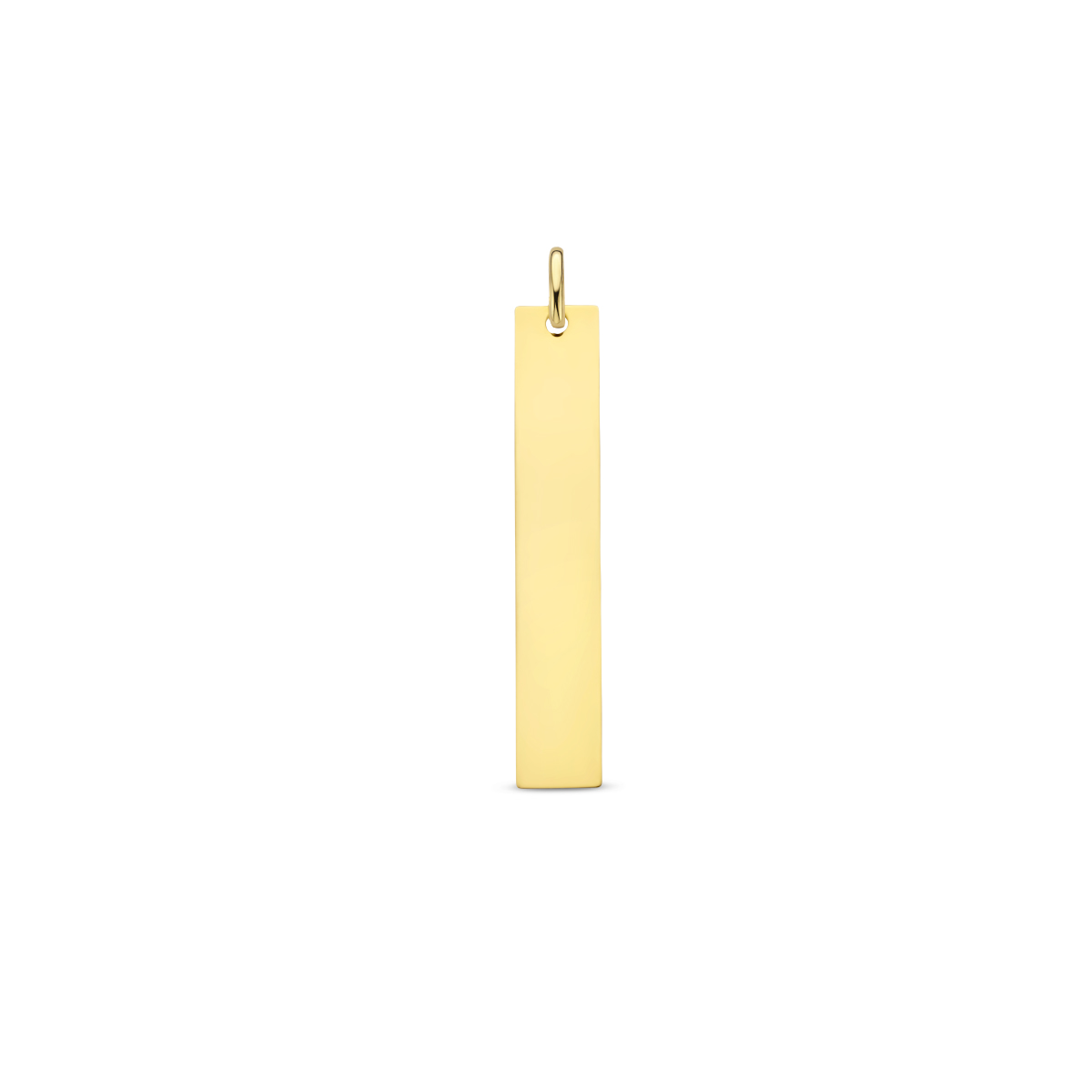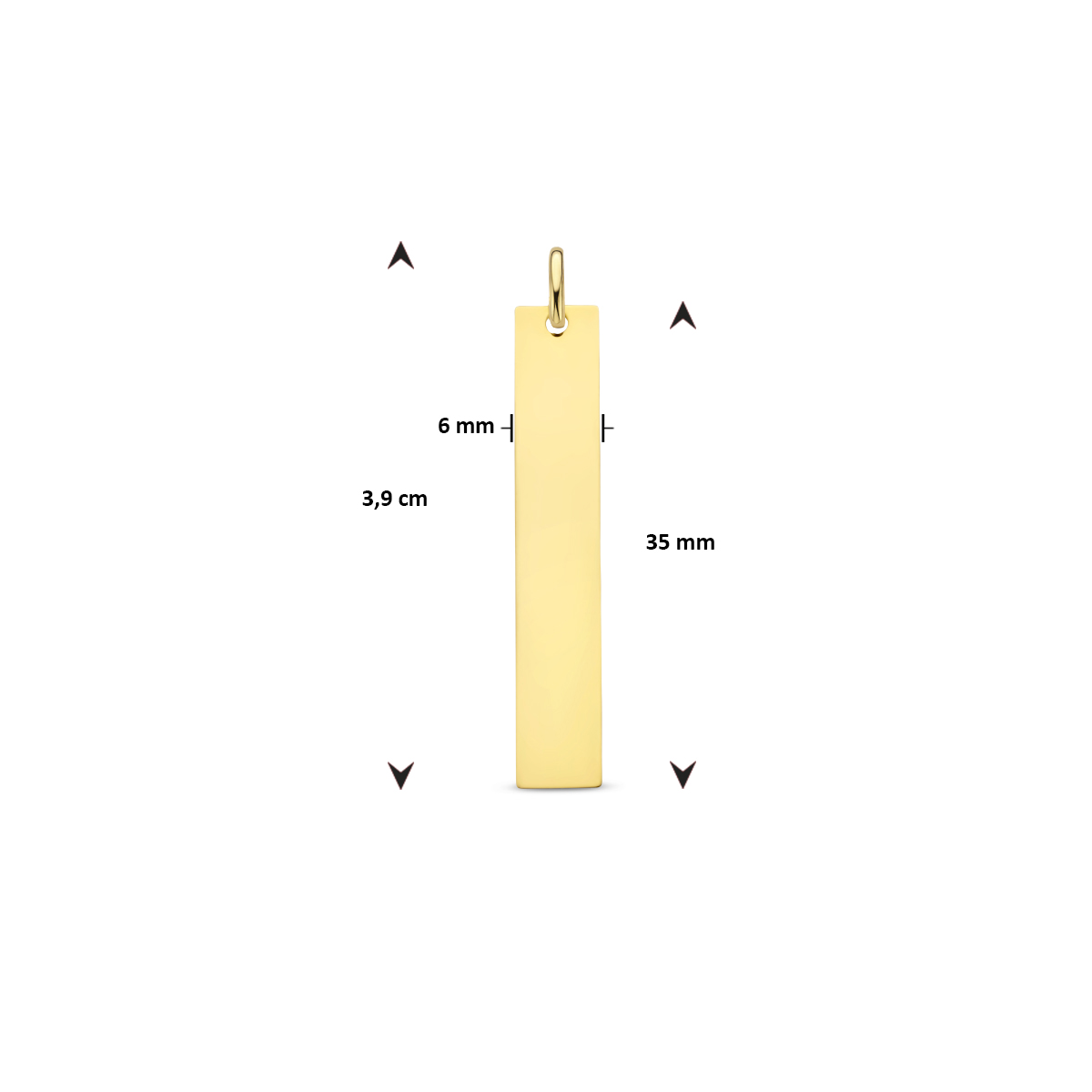 14k Geelgouden hanger met een totale hoogte van 3.9cm. De rechthoek heeft een afmeting van 35x6mm en een dikte van 0.6mm.