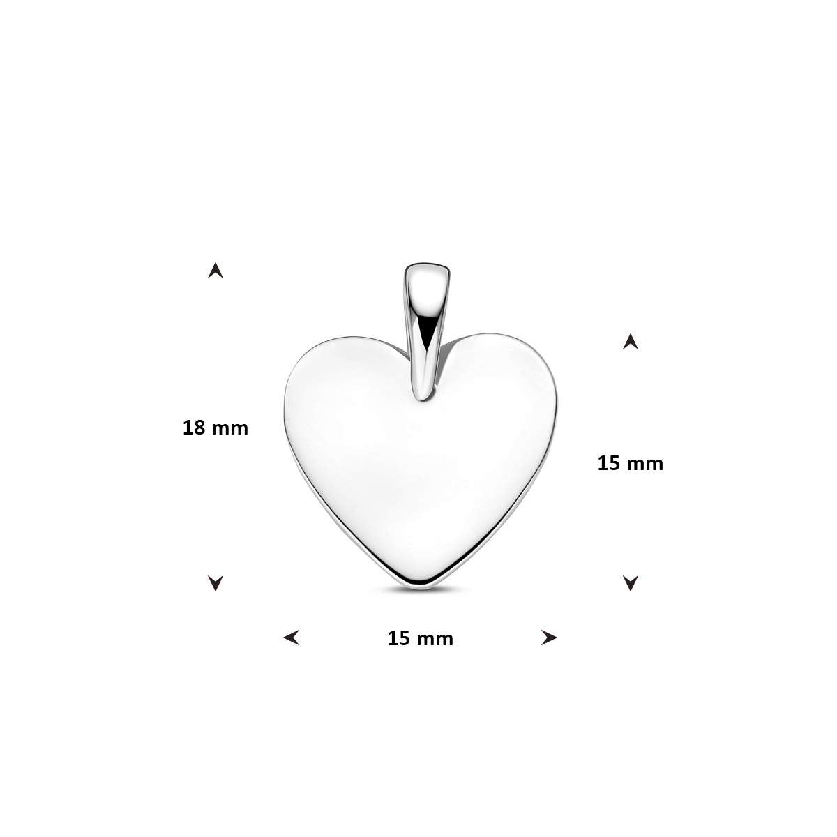 Gerhodineerd 925 zilveren graveerhanger in de vorm van een hartje. De hanger heeft een totale hoogte van 18mm.