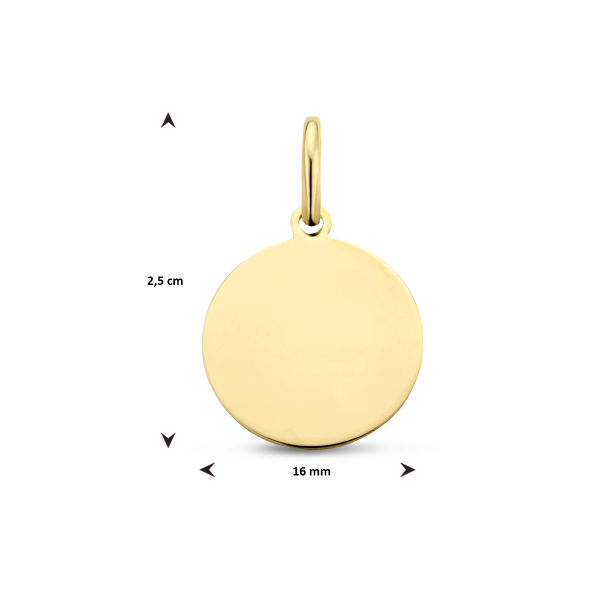 Verguld op 925 zilveren ronde graveerhanger met een hoogte van 2.5cm, een diameter van 16mm en een dikte van 0.6mm. Geen garantie op plating.
