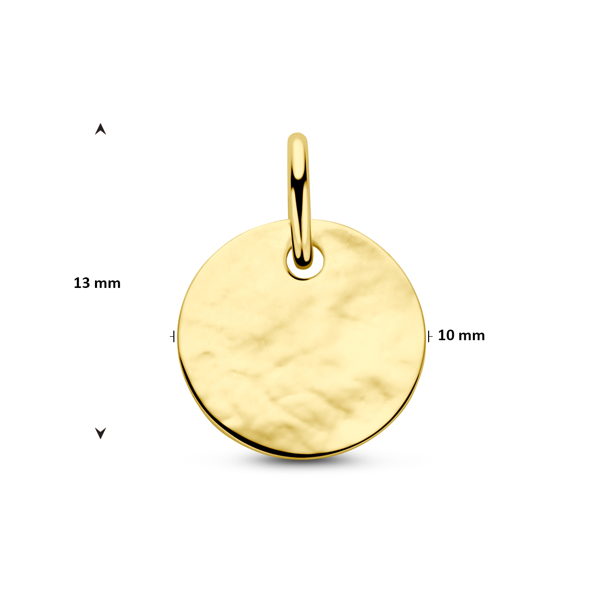 14k Geelgouden graveerhanger in de vorm van een rondje met een diameter van 10mm en een dikte van 0,5mm.