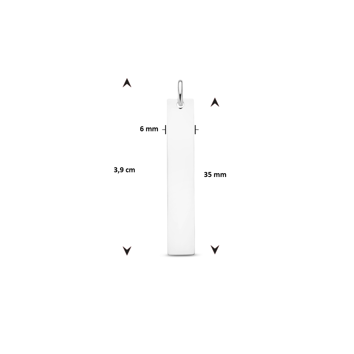 925 Zilveren hanger met een totale hoogte van 3.9cm. De rechthoek heeft een afmeting van 35x6mm en een dikte van 0.6mm.