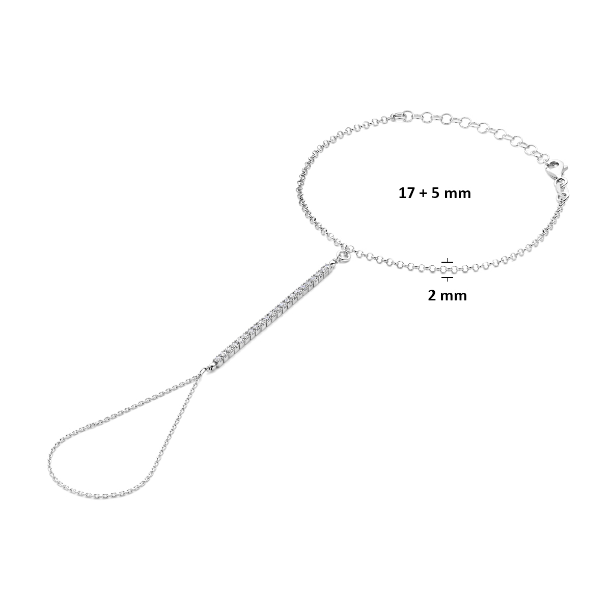 handsieraad zirkonia 17 + 5 cm zilver gerhodineerd