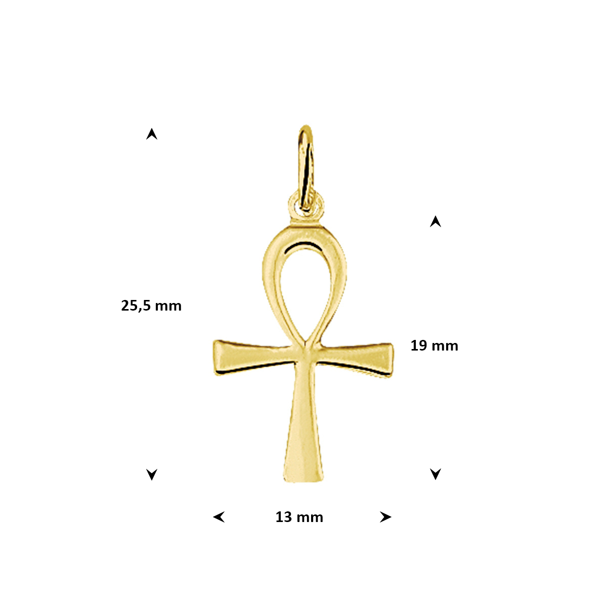 14k Geelgouden hanger met een hoogte van 19mm excl. oogje en een breedte van 13mm.