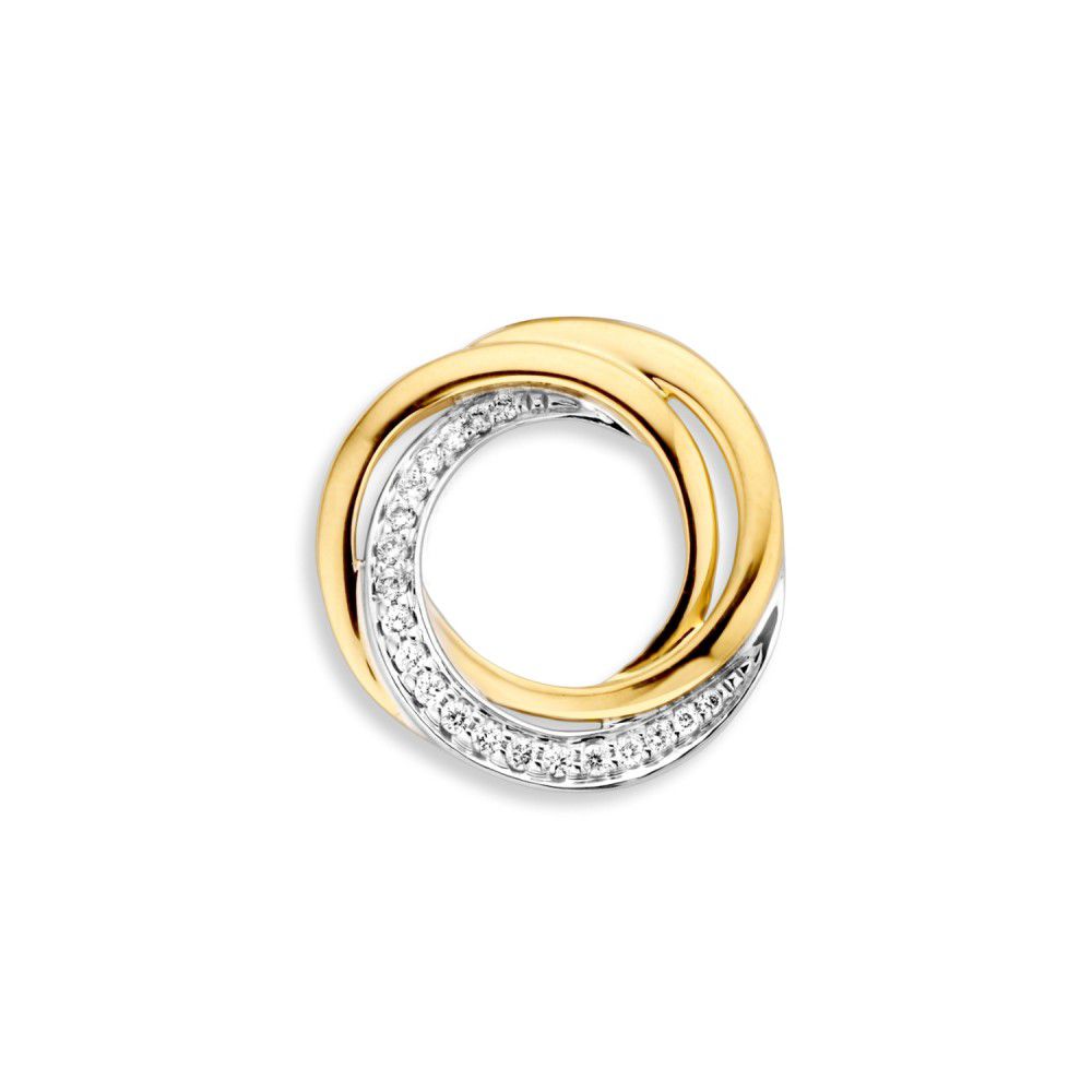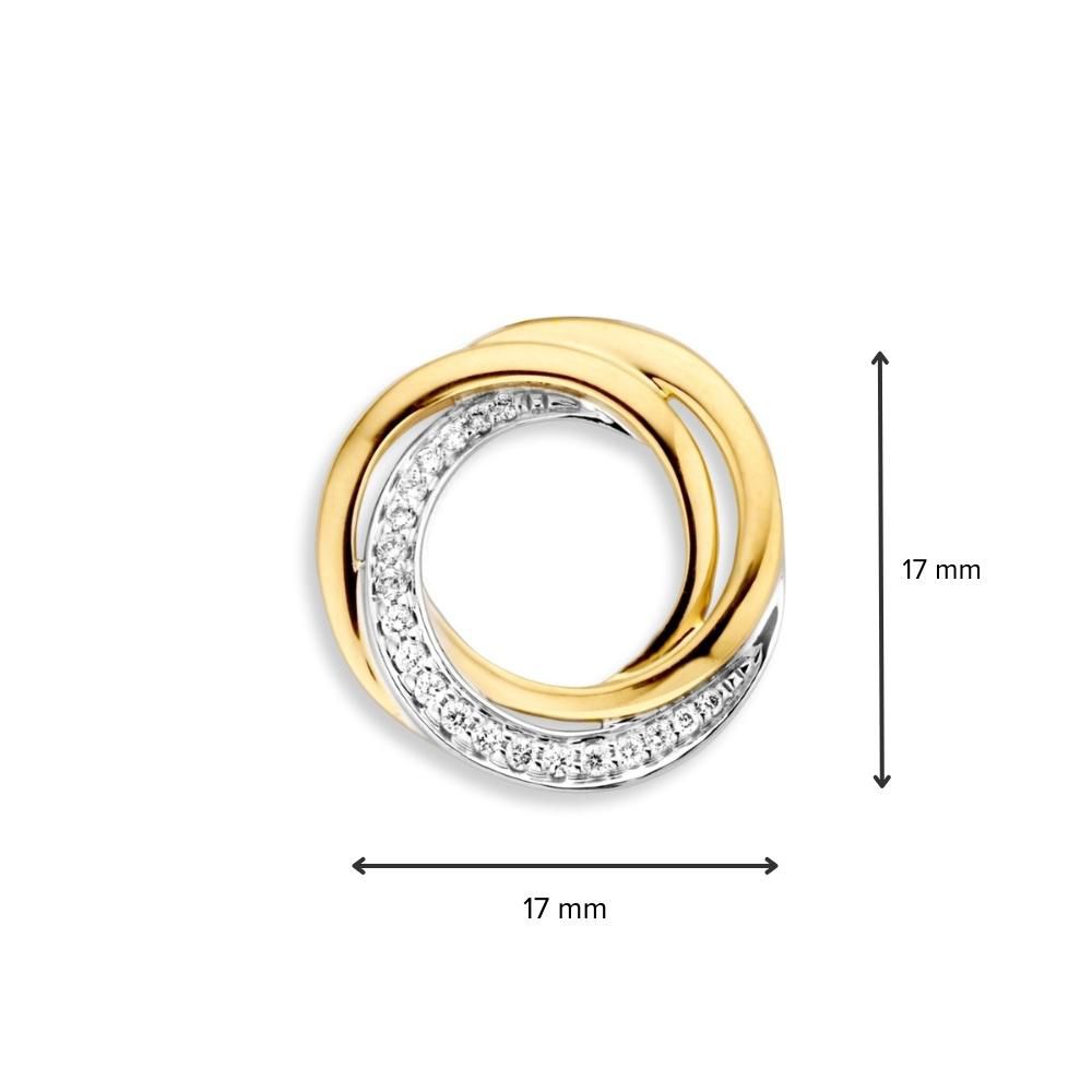 Verfijnde bicolor gouden hanger uitgevoerd 14-karaat geel- en witgoud. De hanger is gezet met 0,11 ct briljant-geslepen diamanten die het licht prachtig vangen en extra glans geven aan elke outfit.