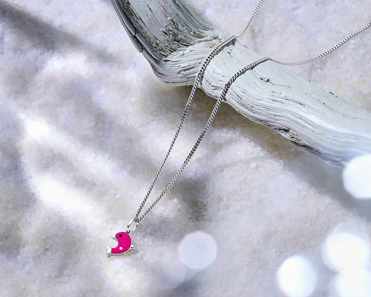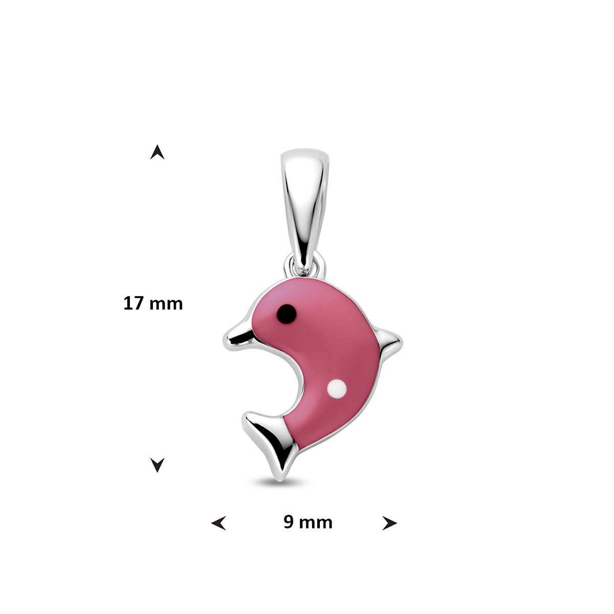 hanger emaille dolfijn rood 17 mm zilver gerhodineerd