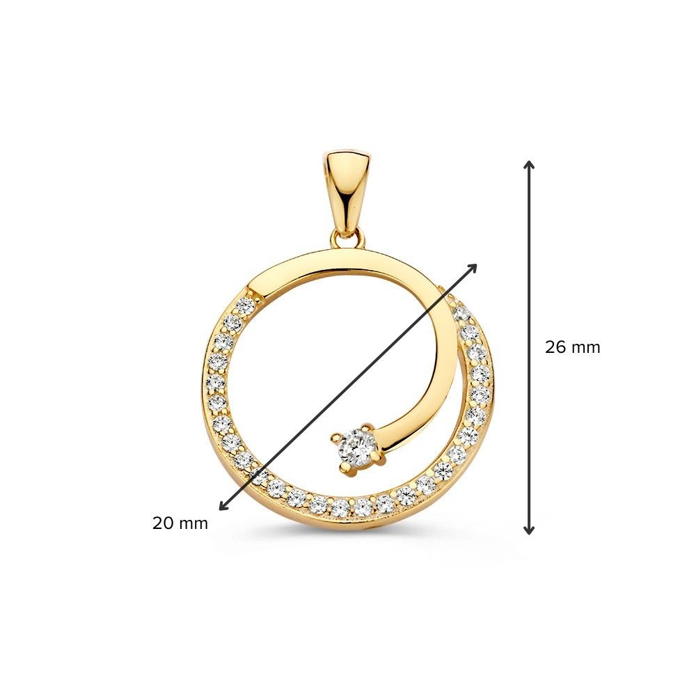 Speelse ronde, gouden hanger, gezet met zirkonia’s.