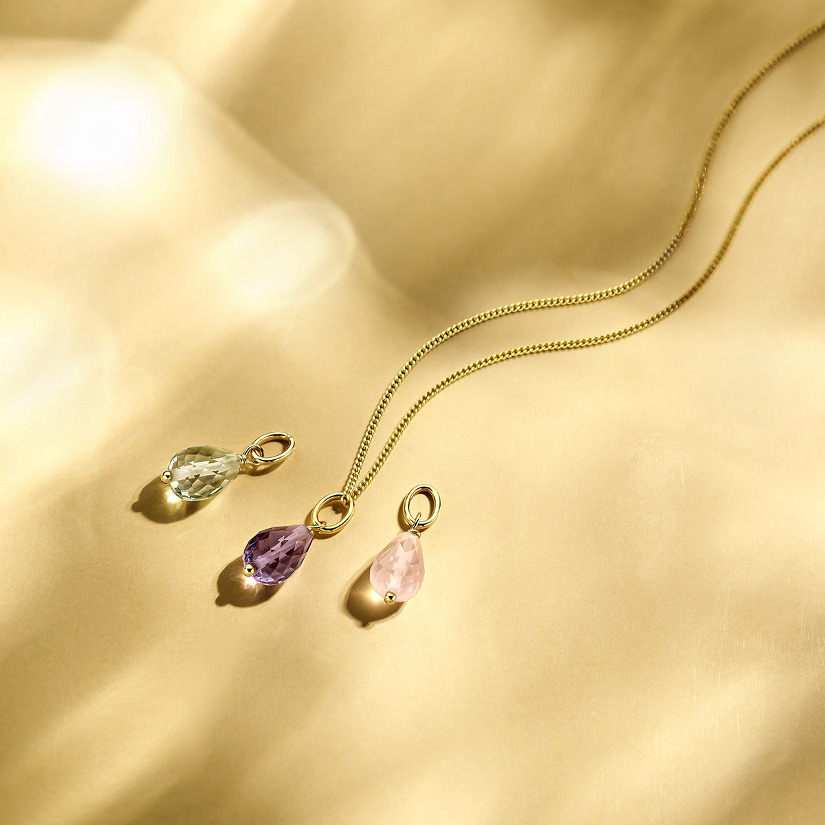 14k Geelgouden hanger uitgevoerd met amethist. De hanger heeft een totale hoogte van 15mm.