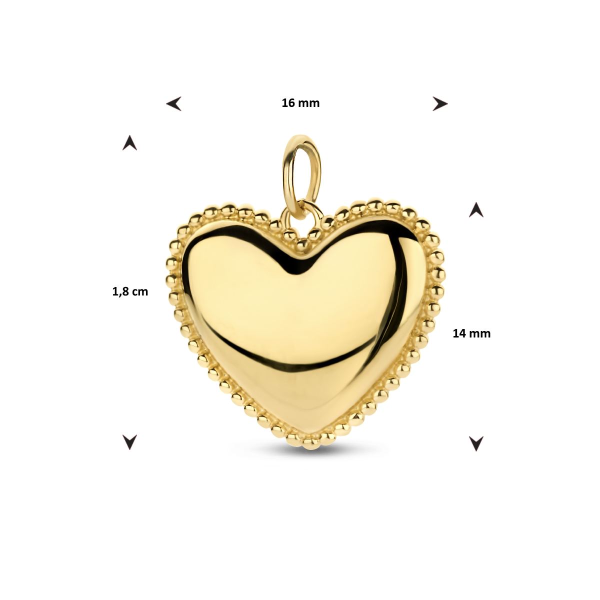 14k Geelgouden hanger in de vorm van een hart. Het hart heeft een afmeting van 14x16mm.