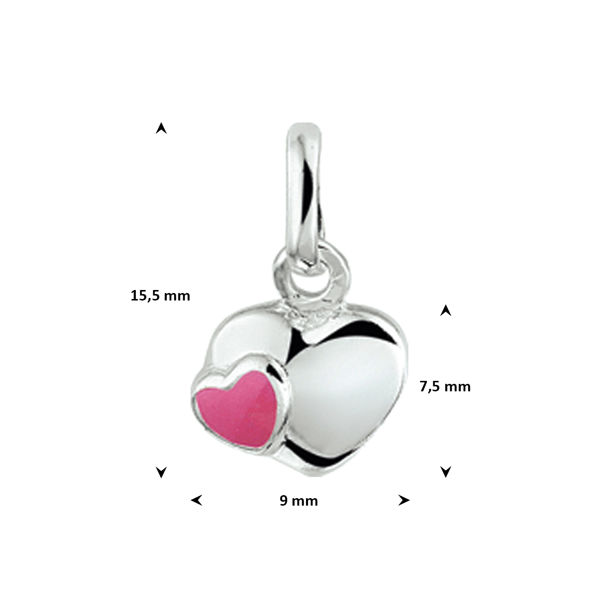Zilveren hanger met een hartje en roze emaille. De hanger is onderdeel van een set.