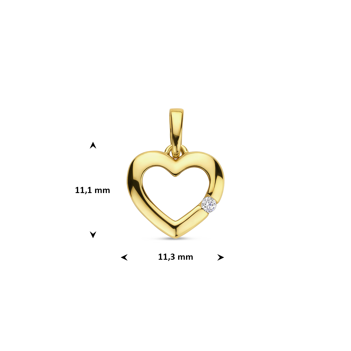 Geelgouden hanger met een hart en zirkonia.