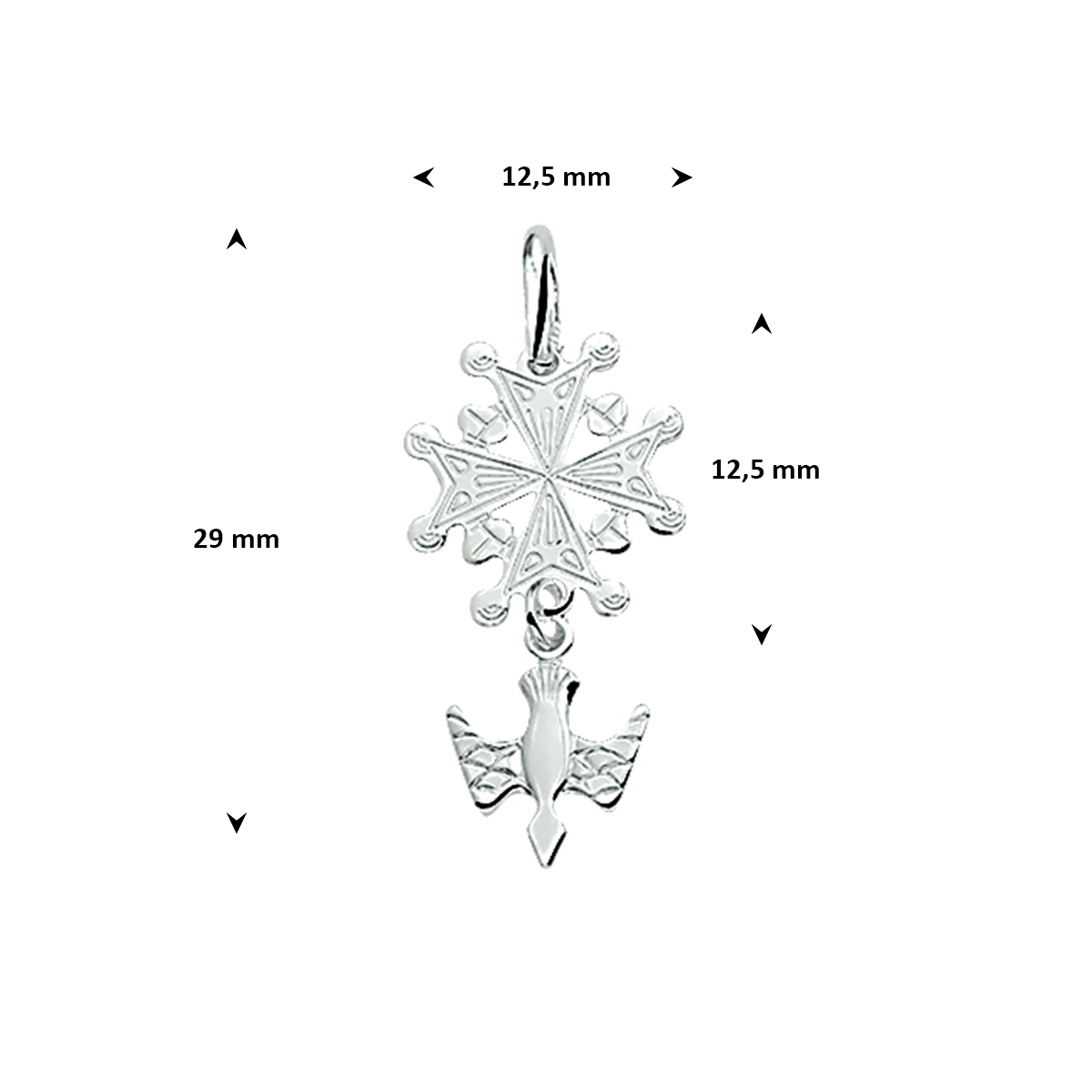 Zilveren hanger in de vorm van een hugenoot. De hanger heeft een totale hoogte van 29mm incl. oogjes.