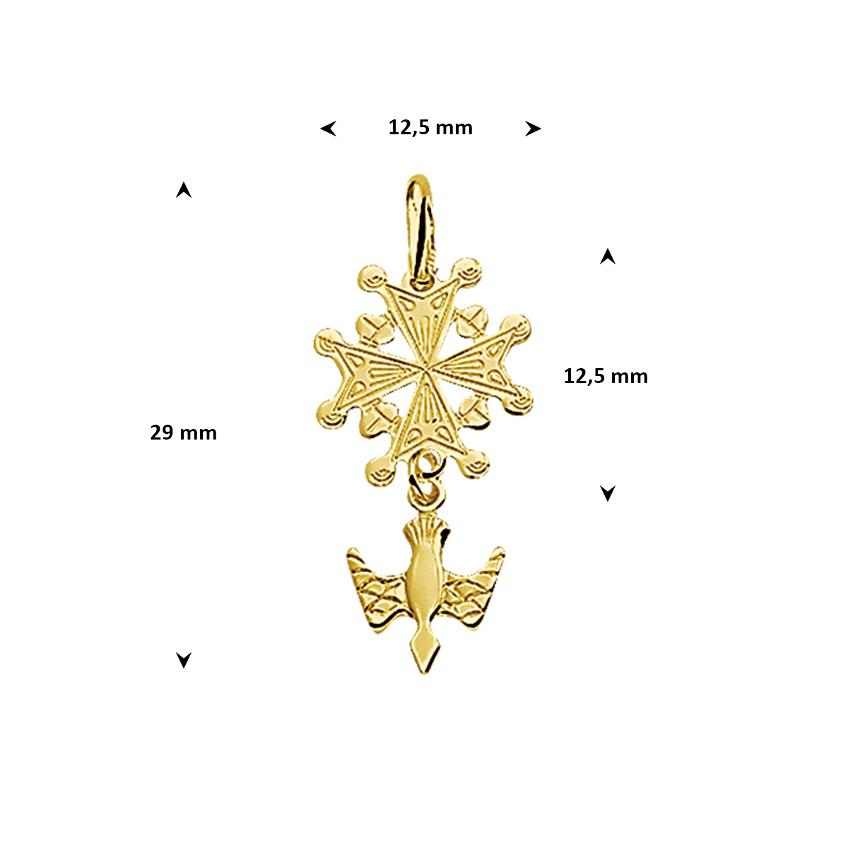 14k Geelgouden hanger met een hugenotenkruis. De hanger heeft een totale hoogte van 29mm incl. oogjes.