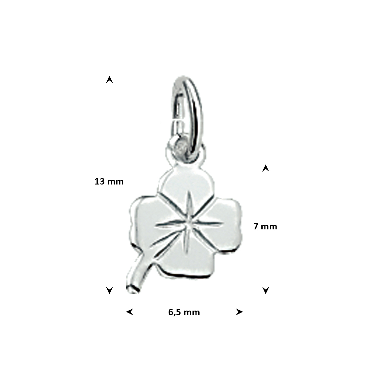 925 Zilveren hanger uitgevoerd in de vorm van een klavertje. De hanger heeft een hoogte van 7mm excl. oogje.