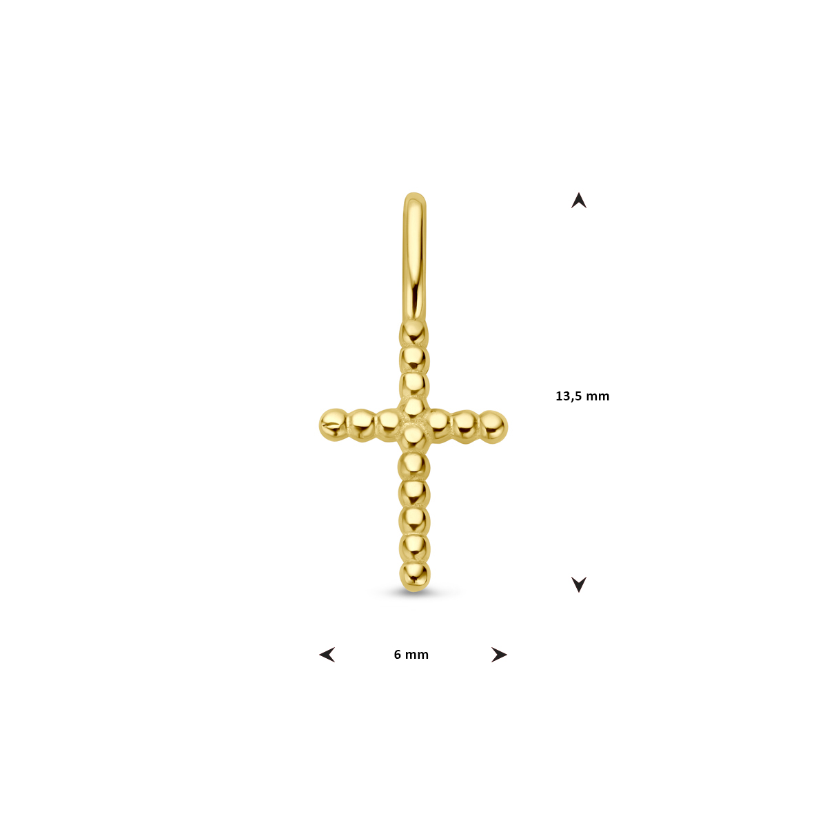 14k Geelgouden hanger uitgevoerd in de vorm van een kruis. Het kruis heeft een afmeting van 13.5x6mm.