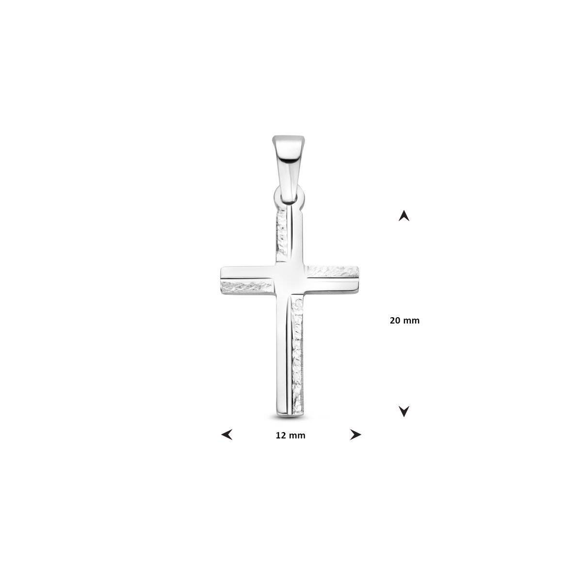 Gerhodineerd 925 zilveren hanger in de vorm van een kruis. De hanger heeft een totale hoogte van 25mm en een afmeting van 20x12mm.