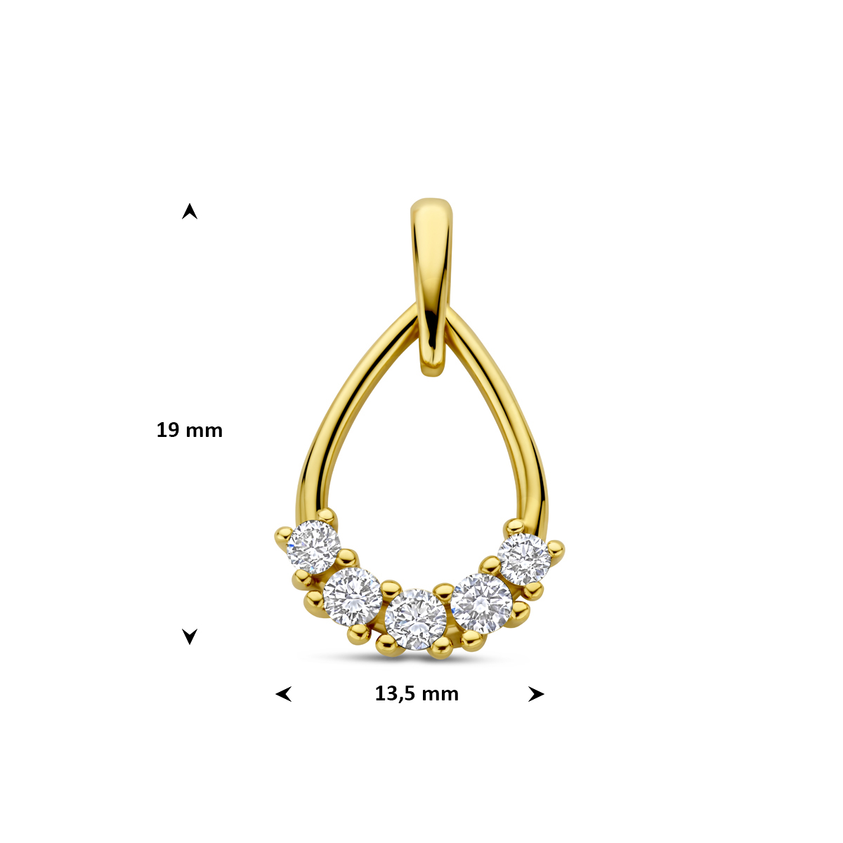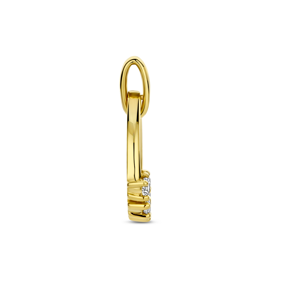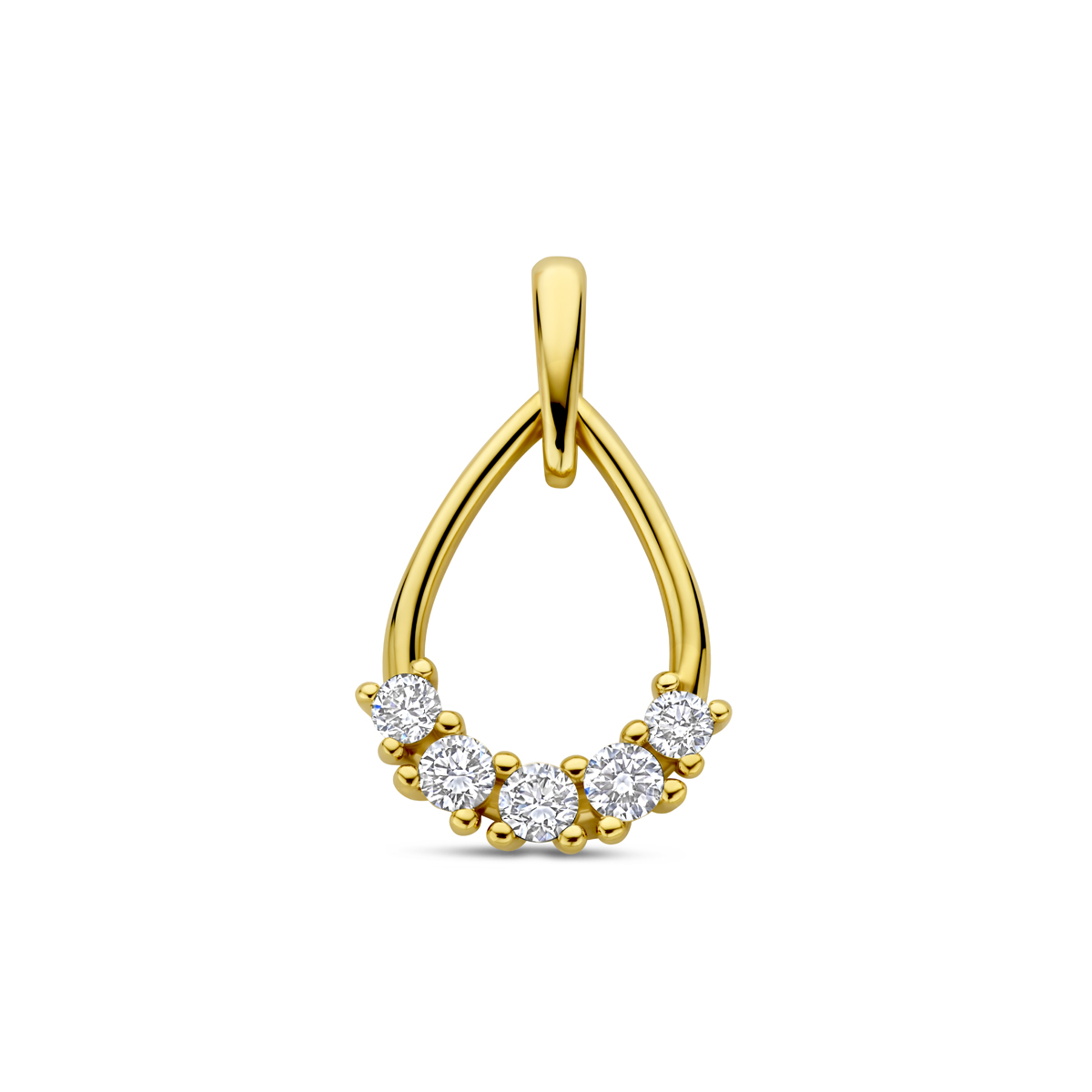 14k Geelgouden hanger uitgevoerd met lab grown diamant. De hanger heeft een totale hoogte van 21mm. Het totale diamantgewicht is 0.32ct. Onder extreem hoge druk en temperatuur wordt het natuurlijk ontstaansproces nagebootst met als eindresultaat een diamant met dezelfde chemische eigenschappen maar met een andere oorsprong.