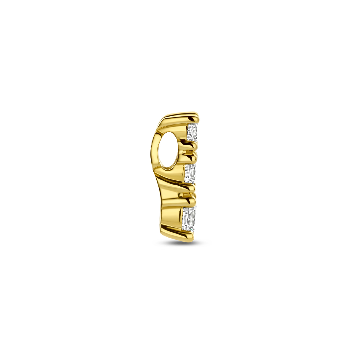 14k Geelgouden hanger uitgevoerd met lab grown diamant. De hanger heeft een afmeting van 12.5×4,5mm. Het totale diamantgewicht is 0.50ct. Onder extreem hoge druk en temperatuur wordt het natuurlijk ontstaansproces nagebootst met als eindresultaat een diamant met dezelfde chemische eigenschappen maar met een andere oorsprong.
