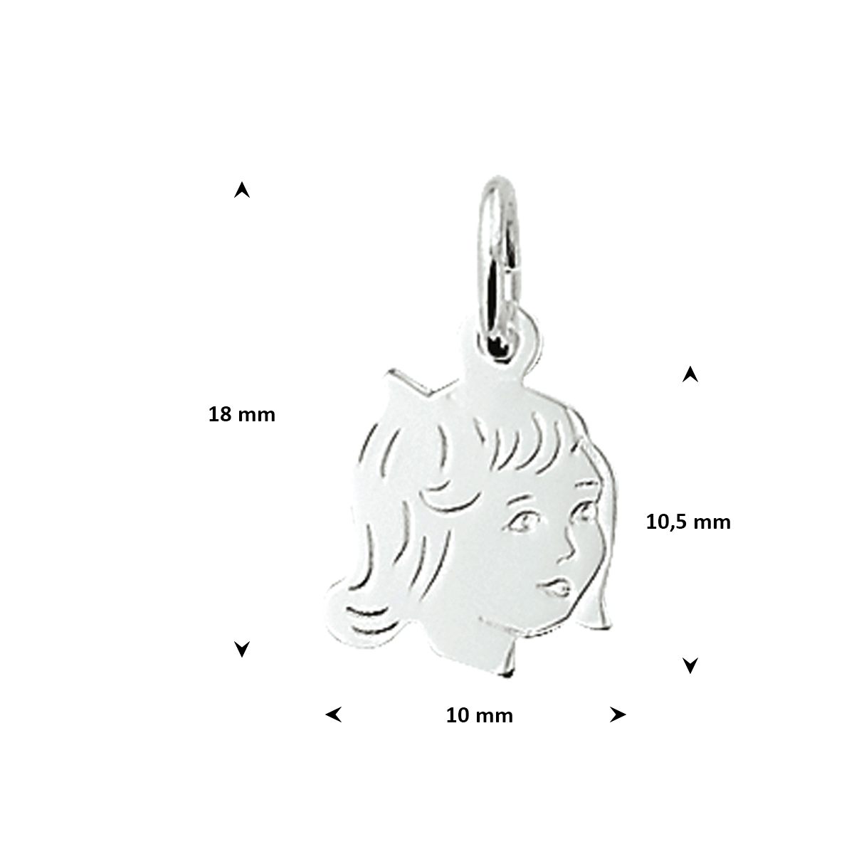 925 Zilveren kinderkopje meisje met een hoogte van 10.5mm excl. oogje.