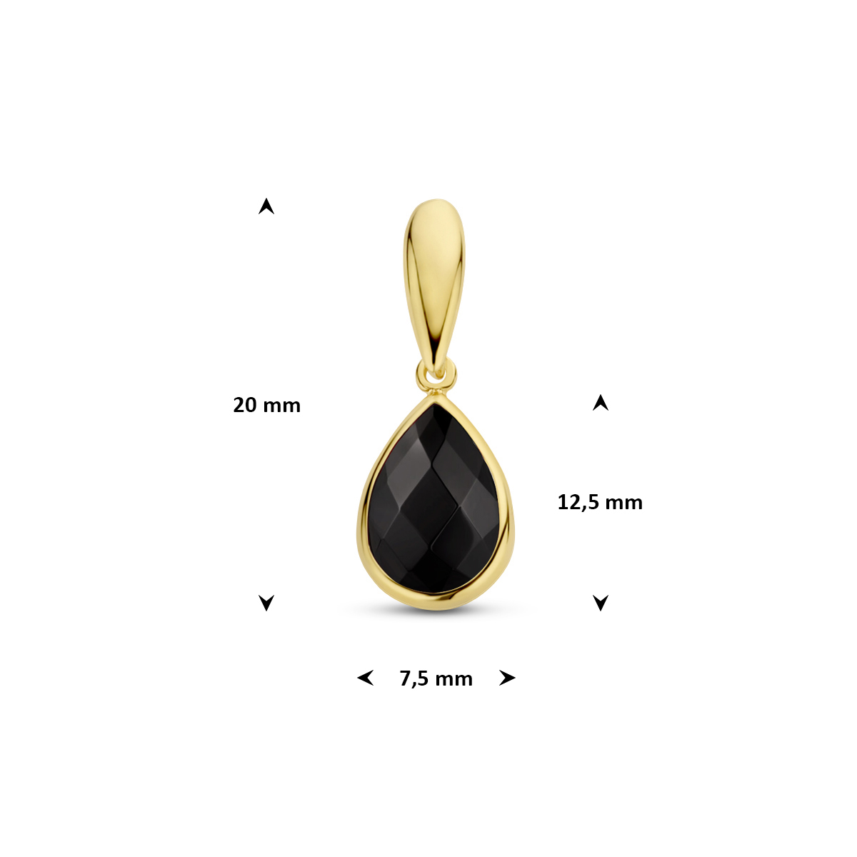 14k Geelgouden hanger uitgevoerd met een schitterende onyx. De hanger heeft een hoogte van 12,5mm excl. oogje.