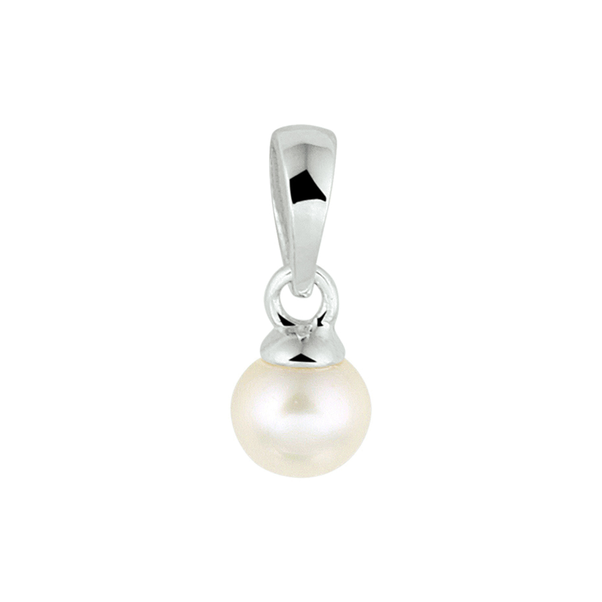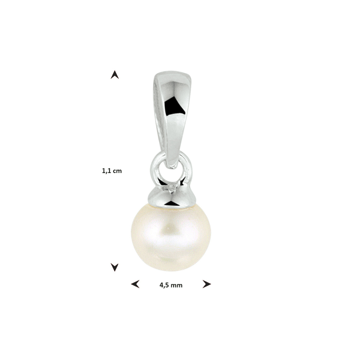 Gerhodineerd 925 zilveren hanger uitgevoerd met een zoetwaterparel. De hanger heeft een totale hoogte van 11mm. De parel heeft een diameter van 4.5mm.