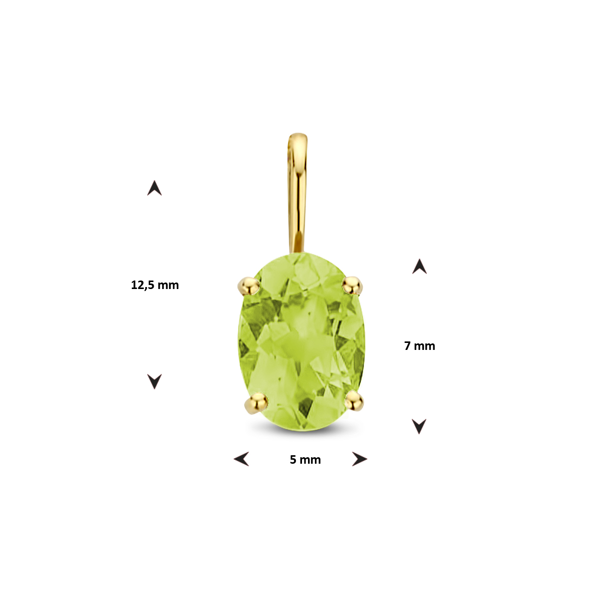 14k Geelgouden hanger uitgevoerd met peridot. De steen heeft een afmeting van 7x5mm.